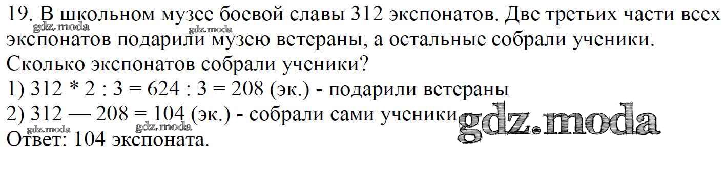 ОТВЕТ на задание № 19 Учебник по Математике 4 класс Моро Школа России