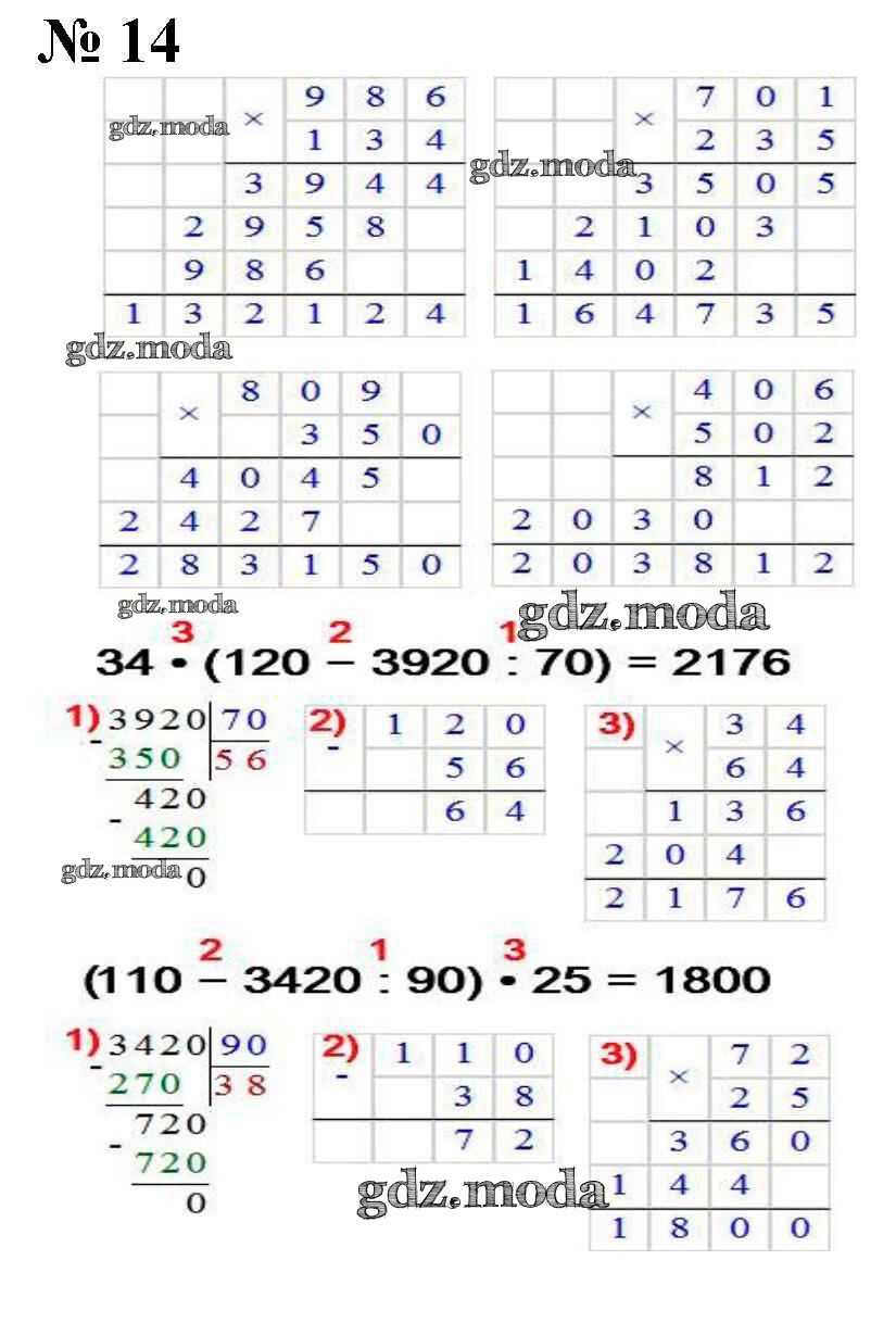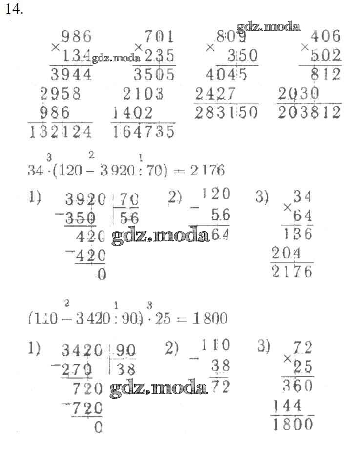 ОТВЕТ на задание № 14 Учебник по Математике 4 класс Моро Школа России