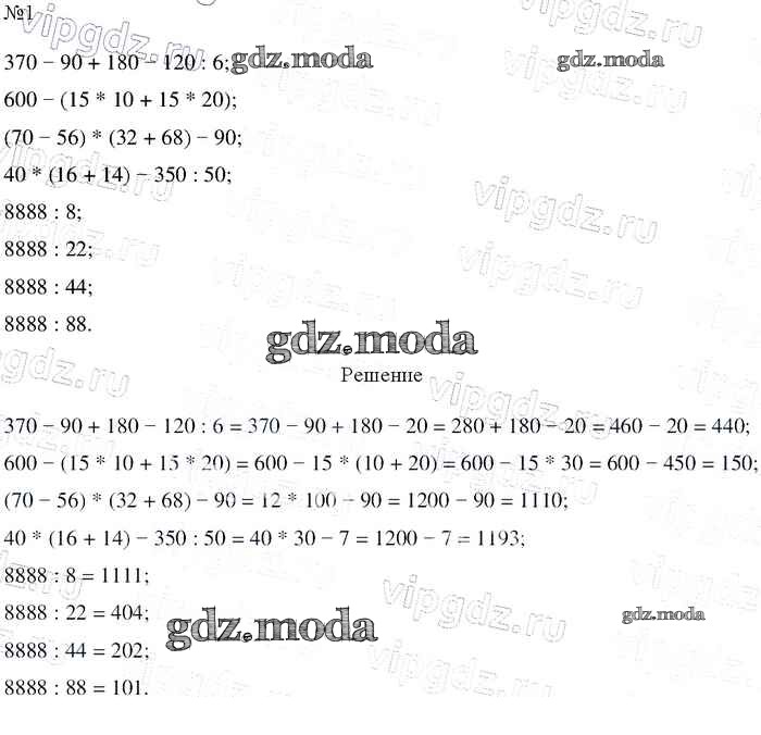 ОТВЕТ на задание № 1 Учебник по Математике 4 класс Моро Школа России
