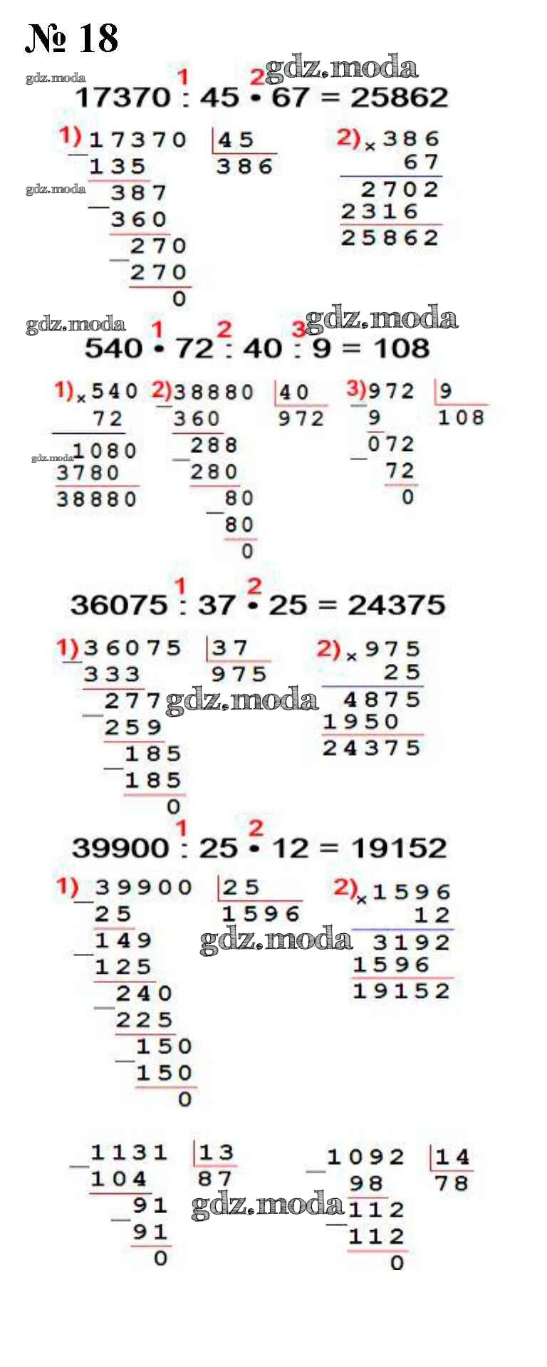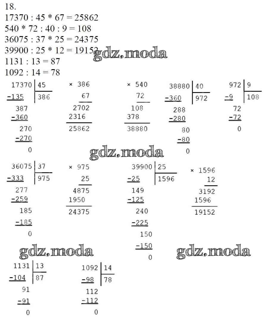 ОТВЕТ на задание № 18 Учебник по Математике 4 класс Моро Школа России