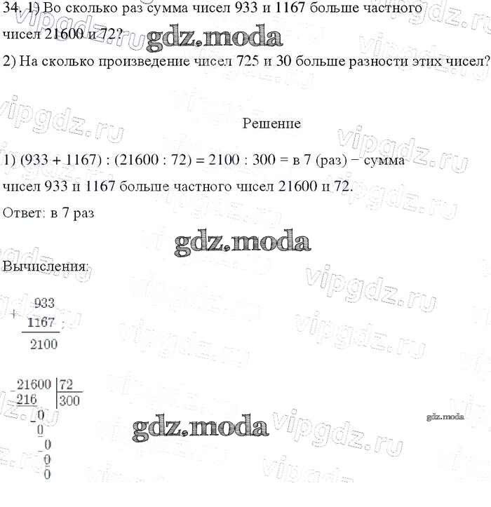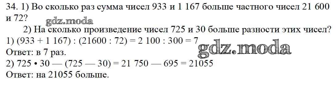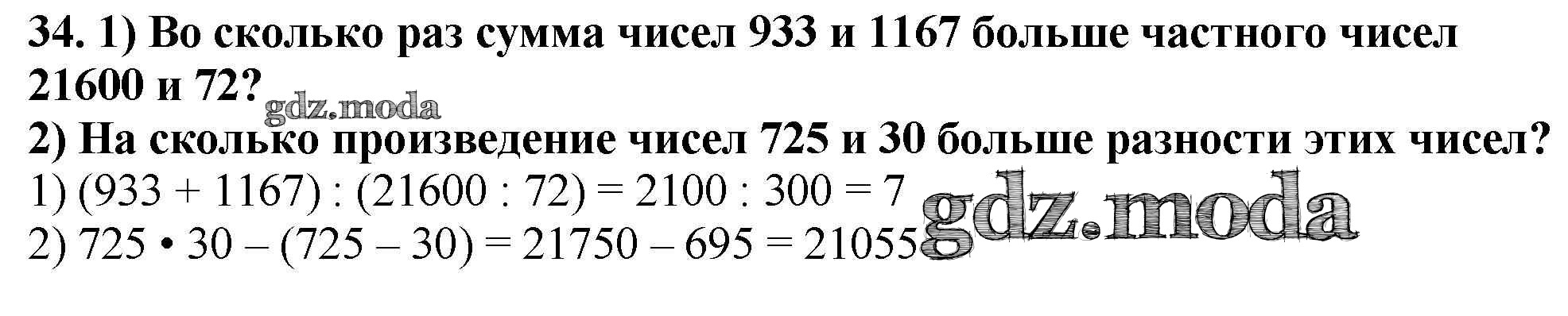 ОТВЕТ на задание № 34 Учебник по Математике 4 класс Моро Школа России