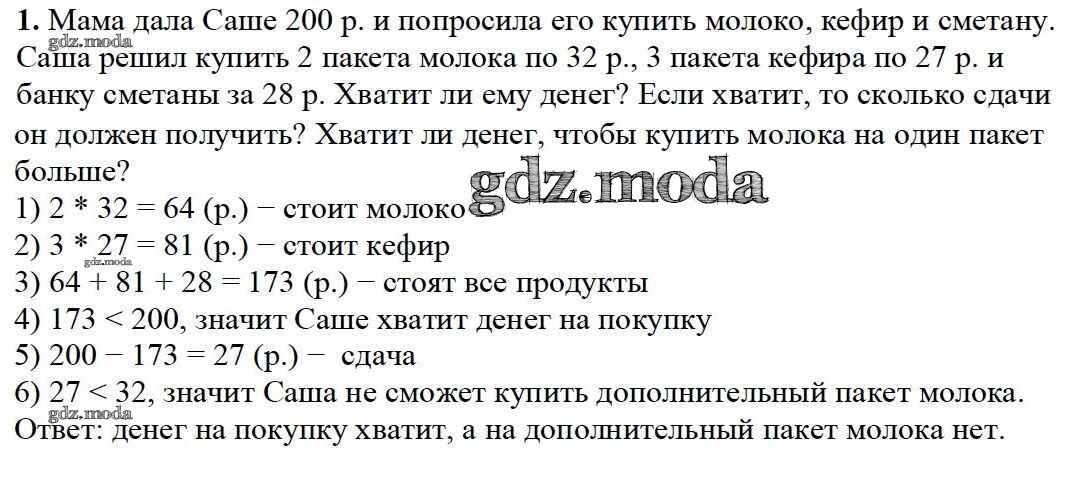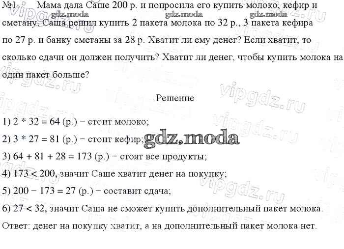 ОТВЕТ на задание № 1 Учебник по Математике 4 класс Моро Школа России