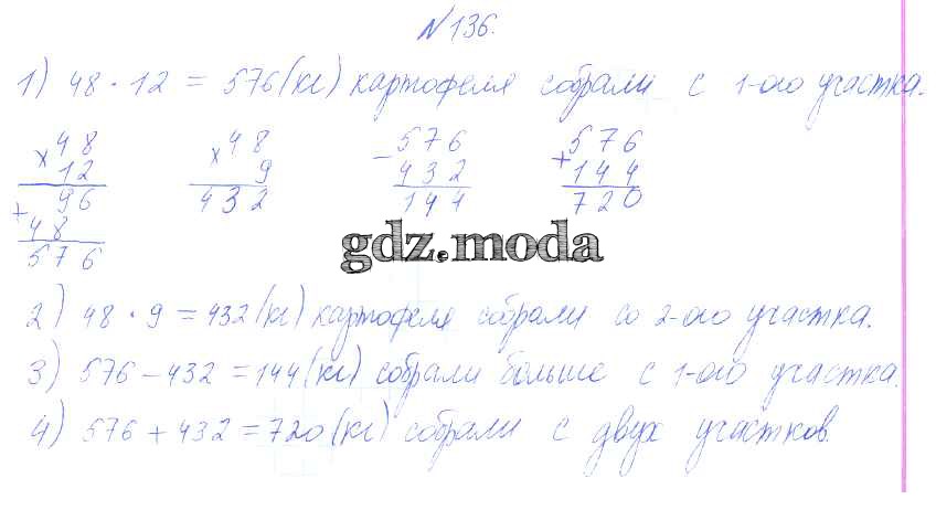 ГДЗ решение к заданию № 136 Математика 4 класс Истомина Н.Б. Ассоциация 21 век 2014 Часть 1, Часть 2 ФГОС бесплатно на гдз.мода!