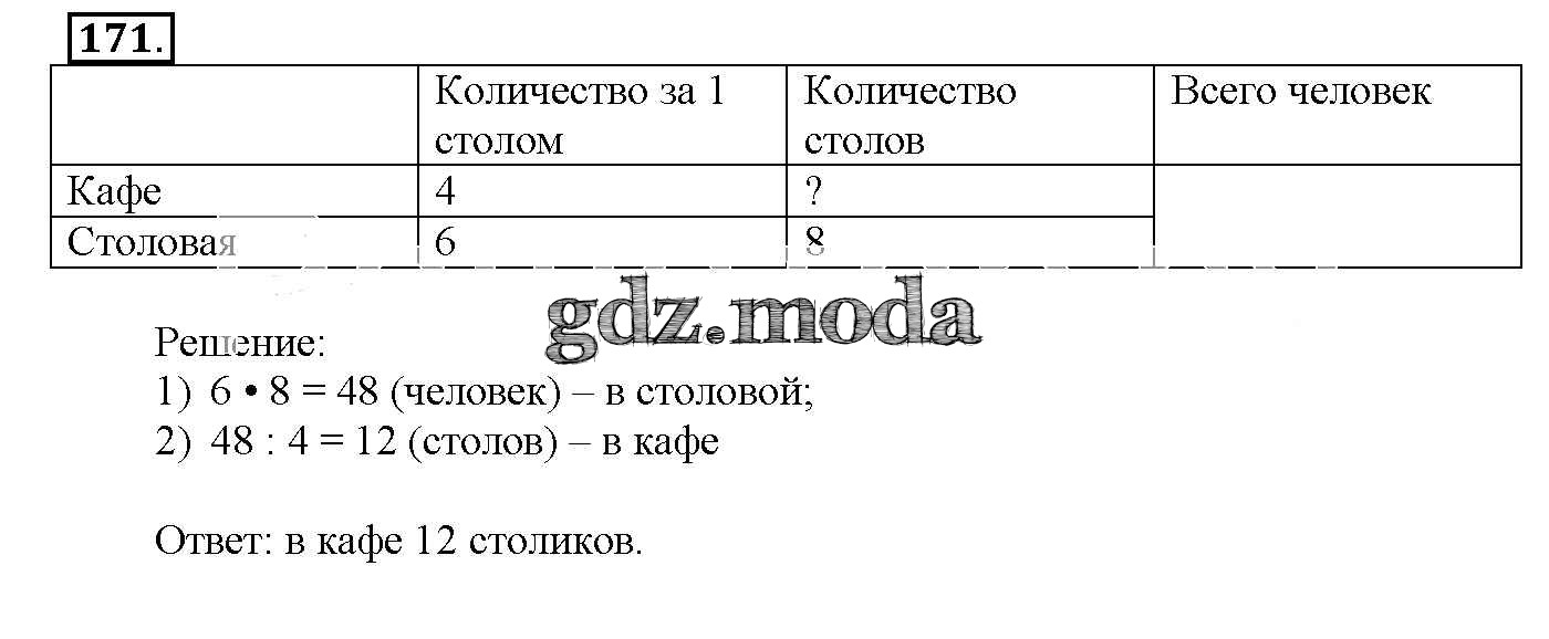 ГДЗ решение к заданию № 171 Математика 4 класс Истомина Н.Б. Ассоциация 21 век 2014 Часть 1, Часть 2 ФГОС бесплатно на гдз.мода!
