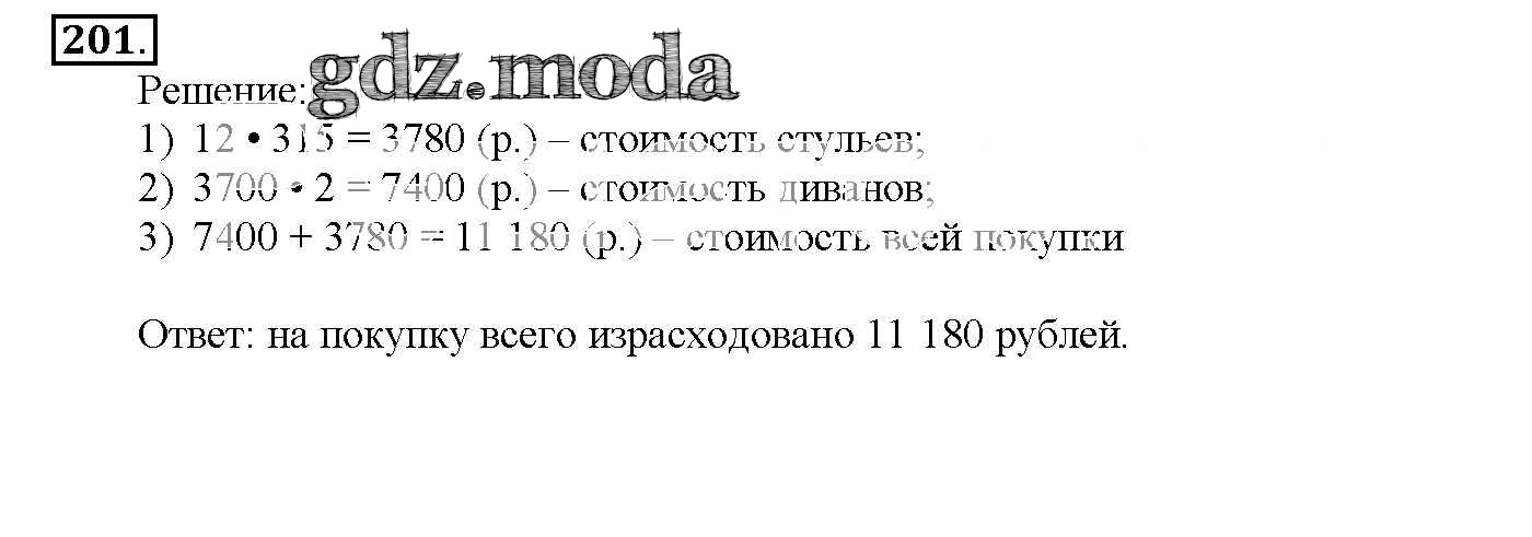 ГДЗ решение к заданию № 201 Математика 4 класс Истомина Н.Б. Ассоциация 21 век 2014 Часть 1, Часть 2 ФГОС бесплатно на гдз.мода!