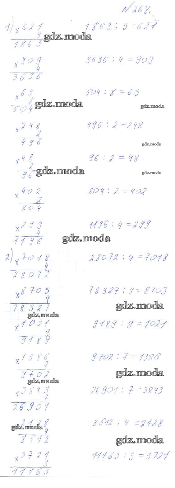 ГДЗ решение к заданию № 268 Математика 4 класс Истомина Н.Б. Ассоциация 21 век 2014 Часть 1, Часть 2 ФГОС бесплатно на гдз.мода!