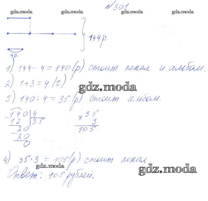 ГДЗ решение к заданию № 301 Математика 4 класс Истомина Н.Б. Ассоциация 21 век 2014 Часть 1, Часть 2 ФГОС бесплатно на гдз.мода!