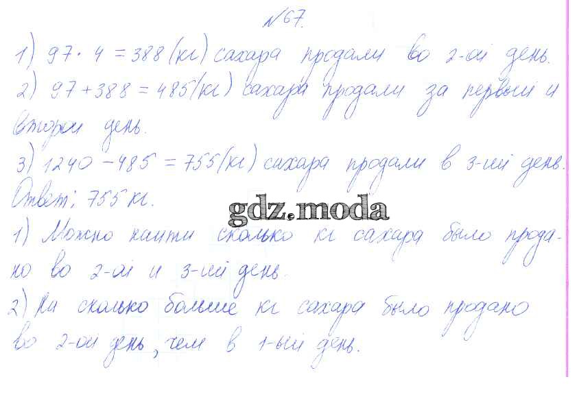ГДЗ решение к заданию № 67 Математика 4 класс Истомина Н.Б. Ассоциация 21 век 2014 Часть 1, Часть 2 ФГОС бесплатно на гдз.мода!