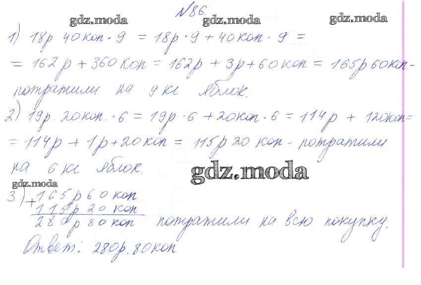 ГДЗ решение к заданию № 86 Математика 4 класс Истомина Н.Б. Ассоциация 21 век 2014 Часть 1, Часть 2 ФГОС бесплатно на гдз.мода!