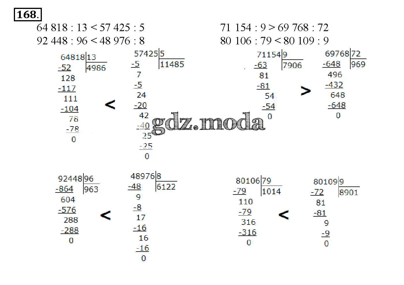 ГДЗ решение к заданию № 168 Математика 4 класс Истомина Н.Б. Ассоциация 21 век 2014 Часть 1, Часть 2 ФГОС бесплатно на гдз.мода!