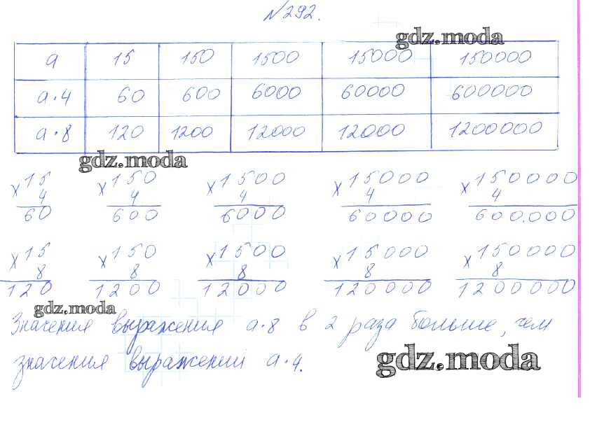ГДЗ решение к заданию № 292 Математика 4 класс Истомина Н.Б. Ассоциация 21 век 2014 Часть 1, Часть 2 ФГОС бесплатно на гдз.мода!