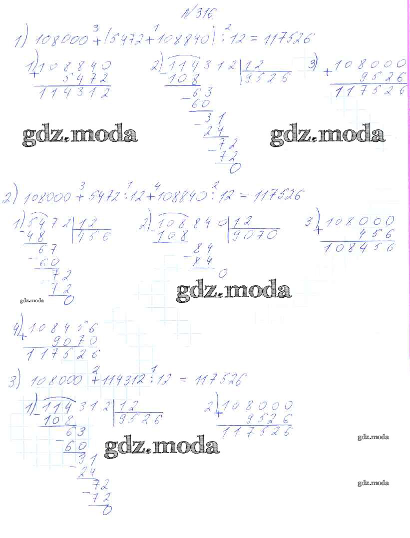 ГДЗ решение к заданию № 316 Математика 4 класс Истомина Н.Б. Ассоциация 21 век 2014 Часть 1, Часть 2 ФГОС бесплатно на гдз.мода!