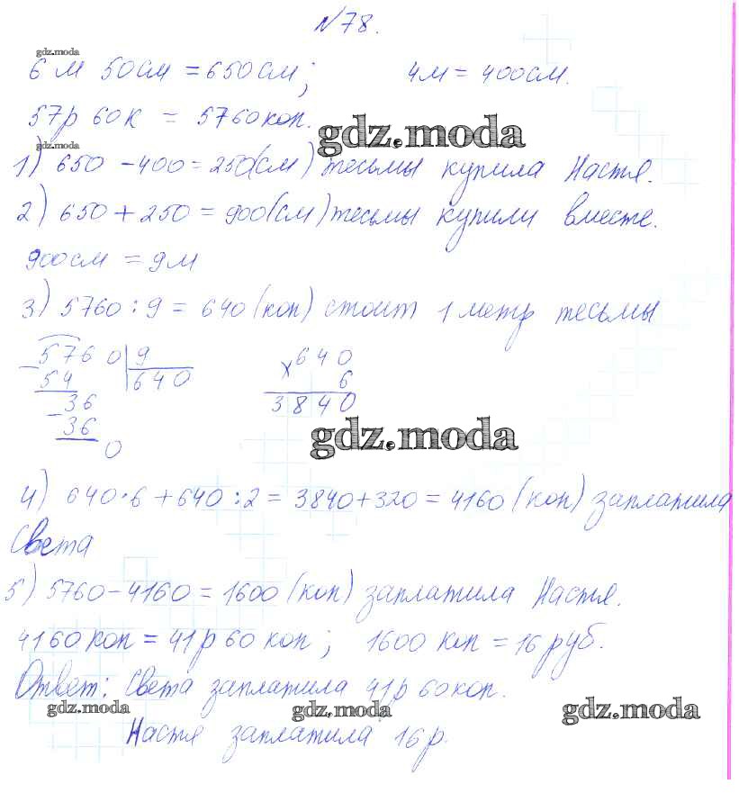 ГДЗ решение к заданию № 78 Математика 4 класс Истомина Н.Б. Ассоциация 21 век 2014 Часть 1, Часть 2 ФГОС бесплатно на гдз.мода!