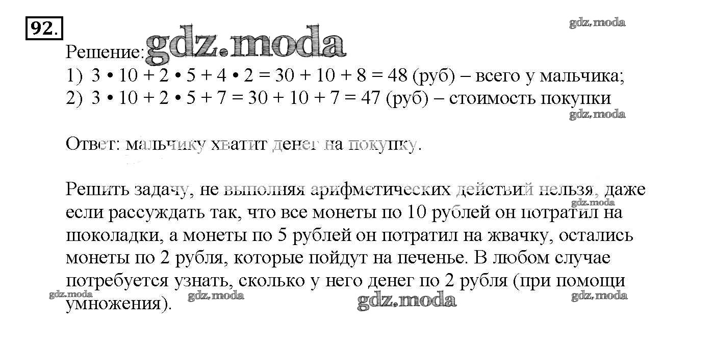 ГДЗ решение к заданию № 92 Математика 4 класс Истомина Н.Б. Ассоциация 21 век 2014 Часть 1, Часть 2 ФГОС бесплатно на гдз.мода!