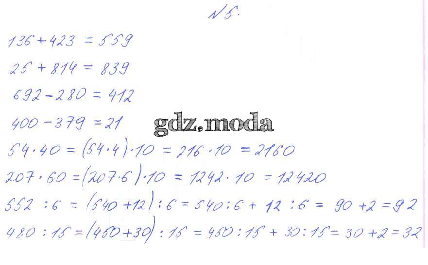 ГДЗ решение к заданию № 5 Математика 4 класс Петерсон Л.Г. Ювента 2010 Часть 1, Часть 2, Часть 3 ФГОС бесплатно на гдз.мода!