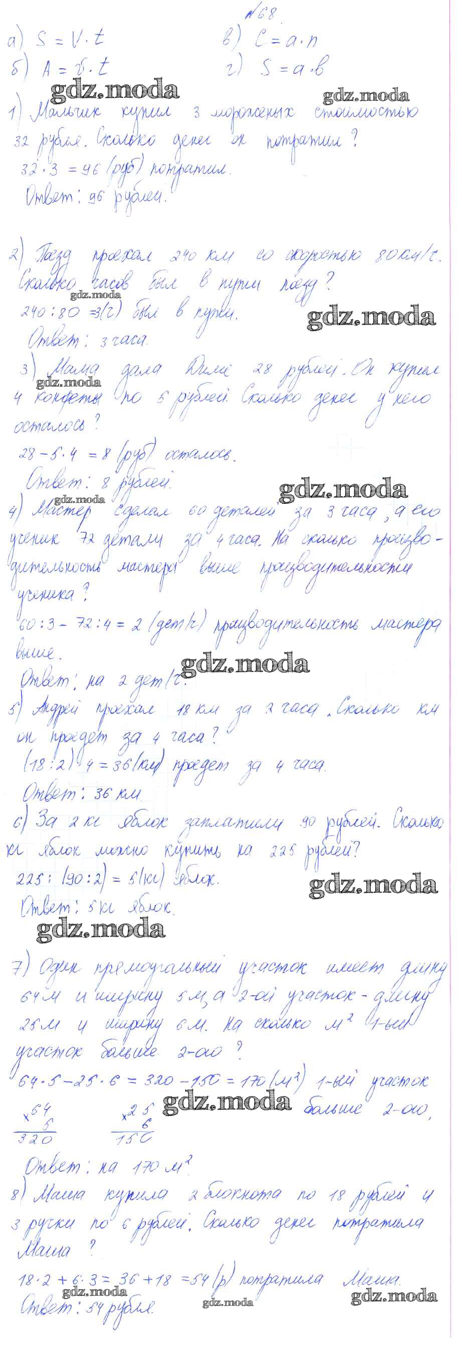ГДЗ решение к заданию № 68 Математика 4 класс Петерсон Л.Г. Ювента 2010 Часть 1, Часть 2, Часть 3 ФГОС бесплатно на гдз.мода!