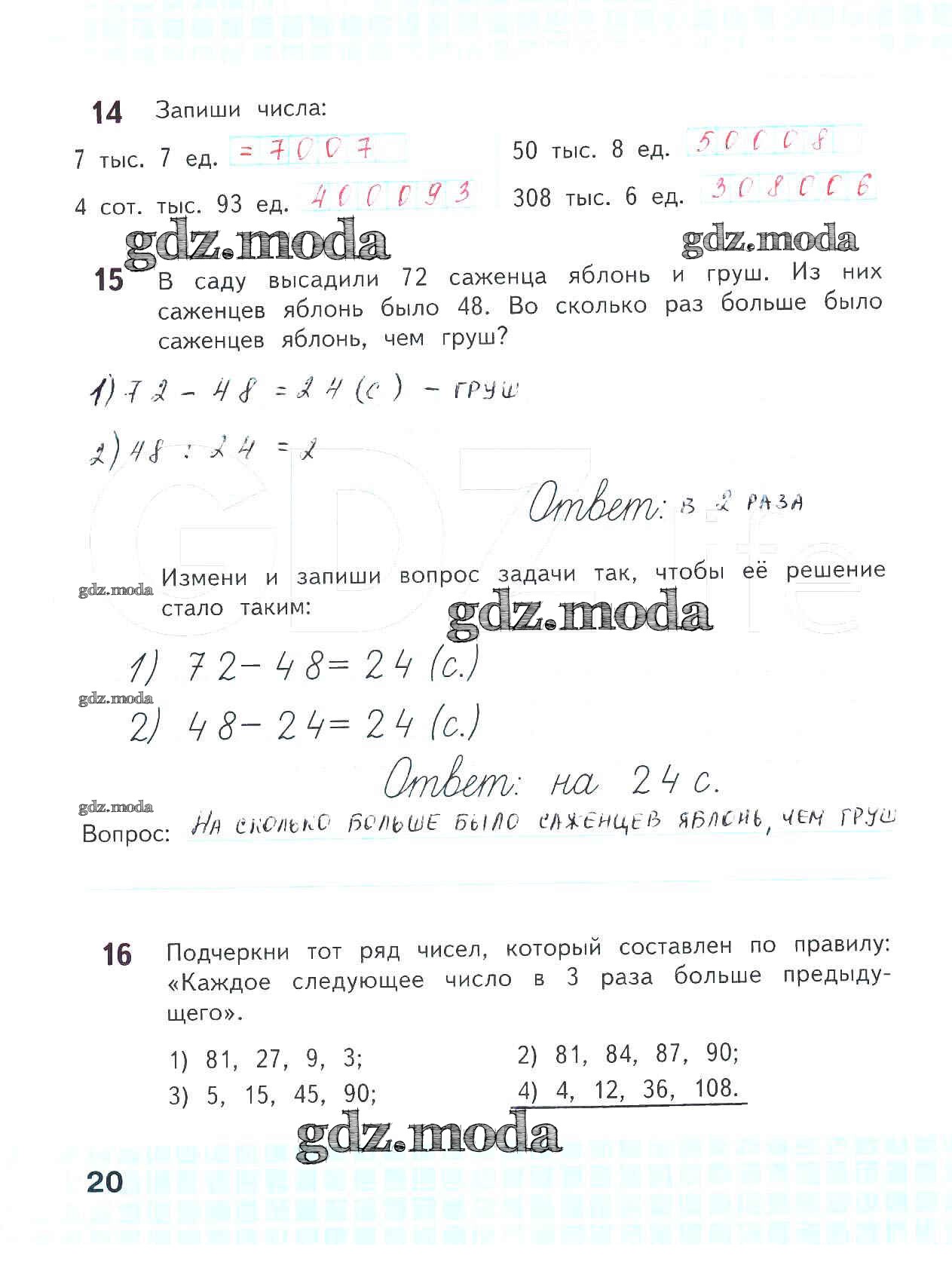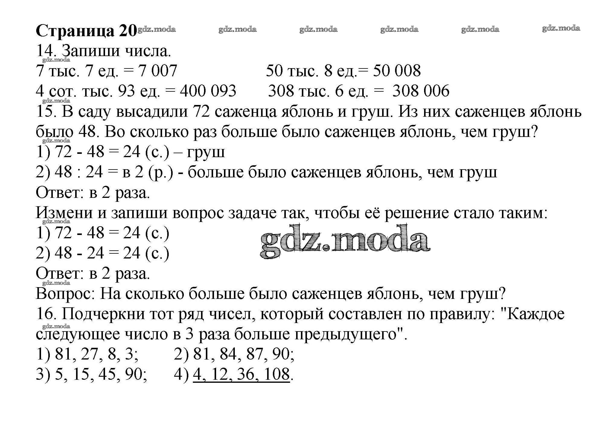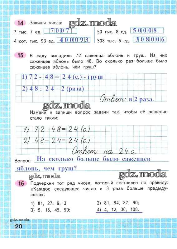 ОТВЕТ на задание № 20 Рабочая тетрадь по Математике 4 класс Волкова Школа России