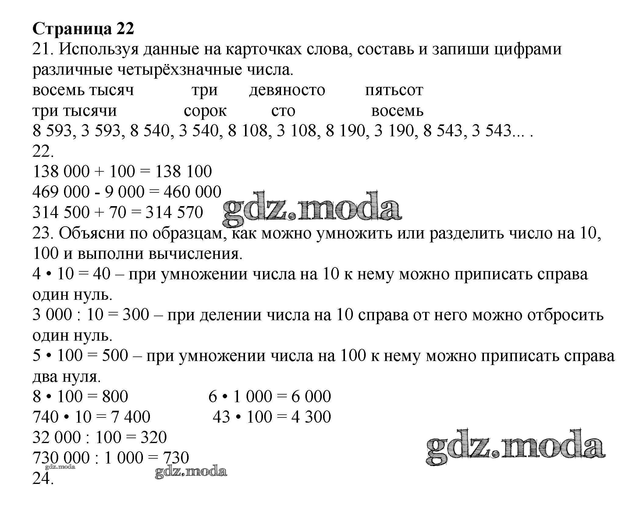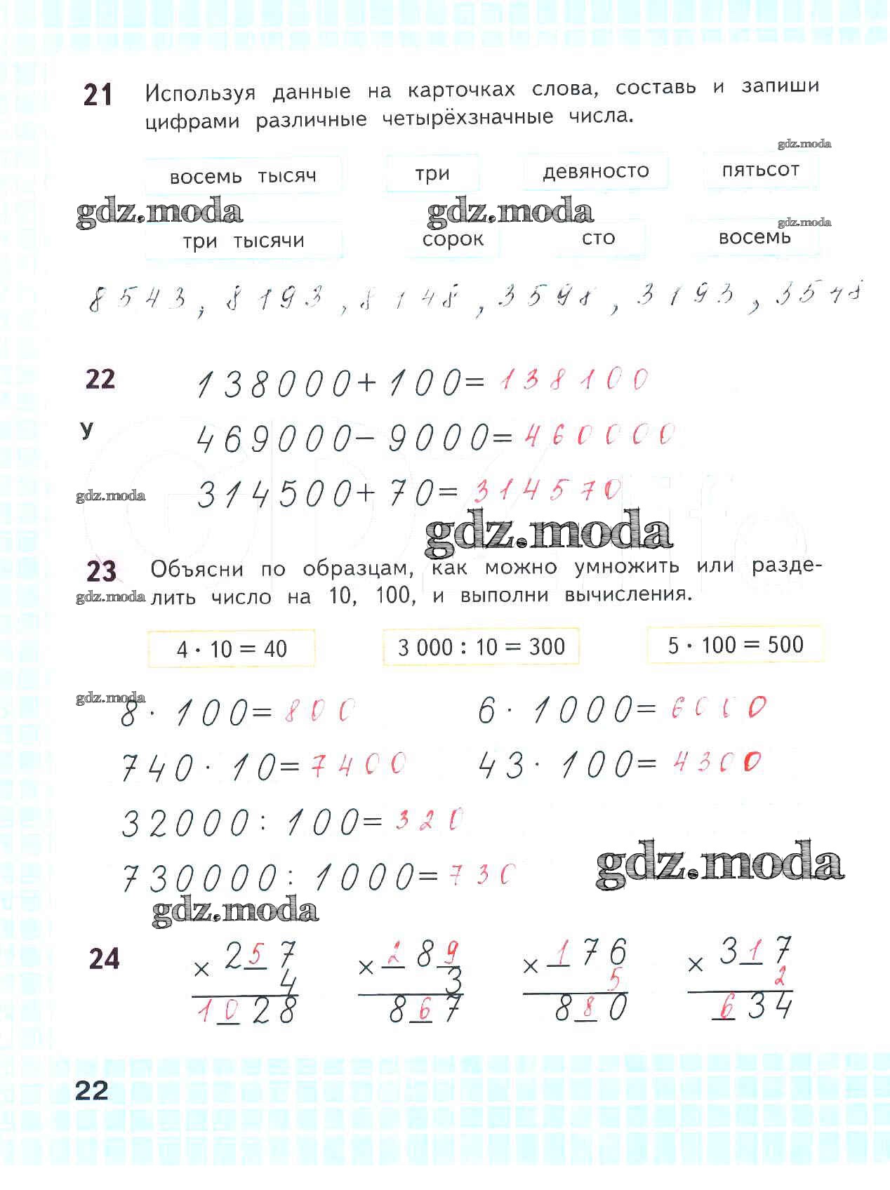 ОТВЕТ на задание № 22 Рабочая тетрадь по Математике 4 класс Волкова Школа России
