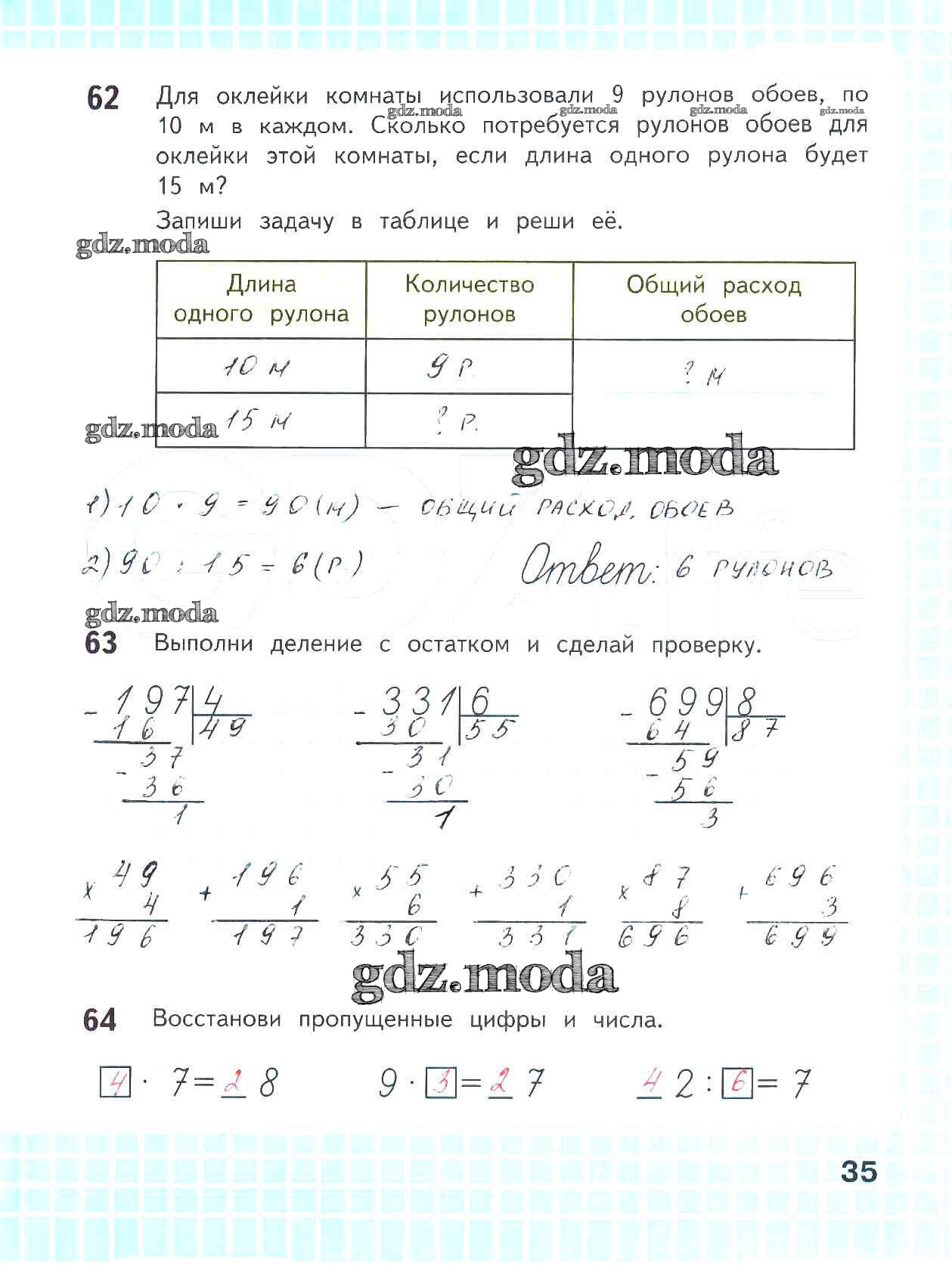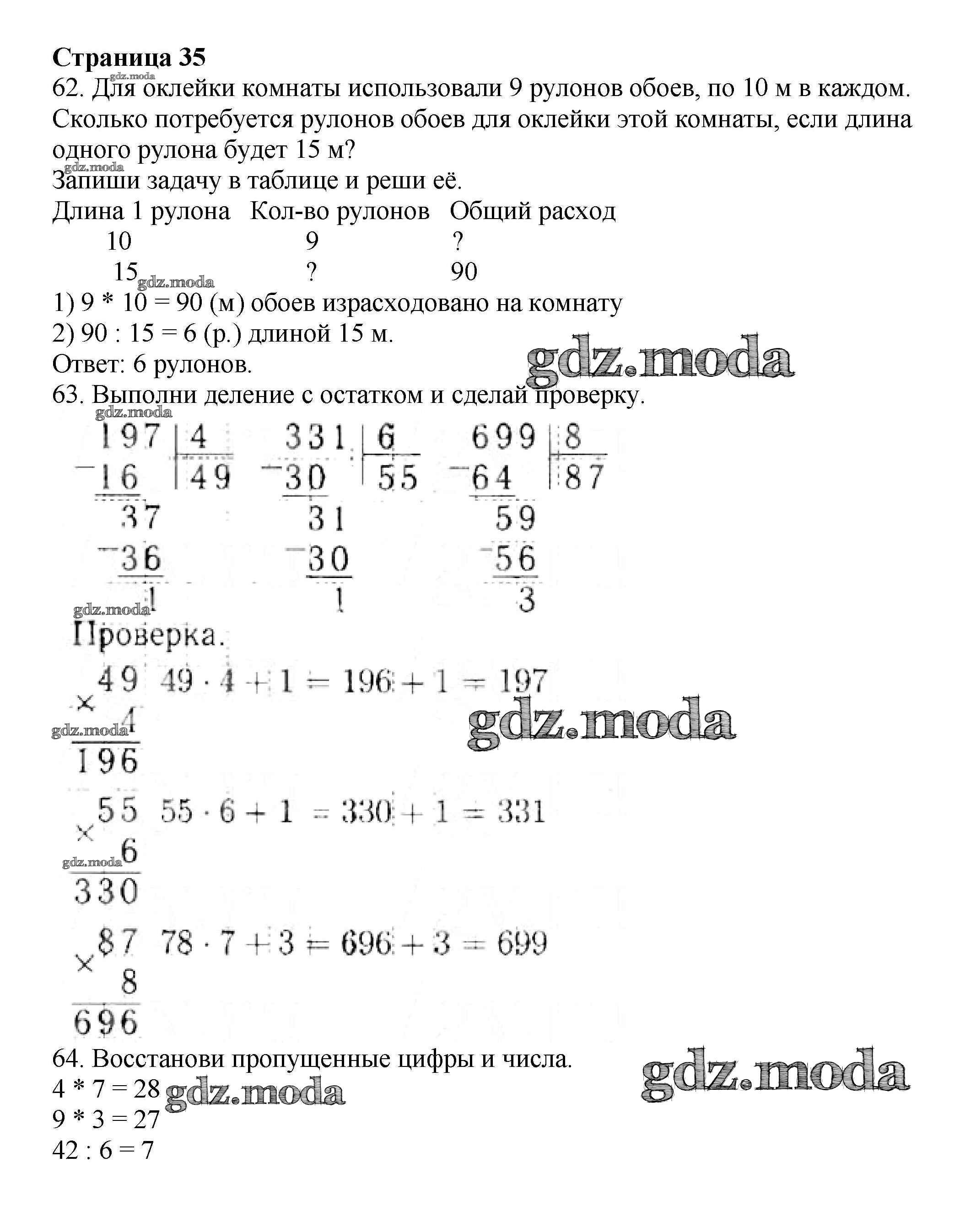 ОТВЕТ на задание № 35 Рабочая тетрадь по Математике 4 класс Волкова Школа России