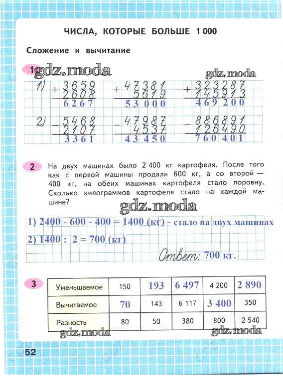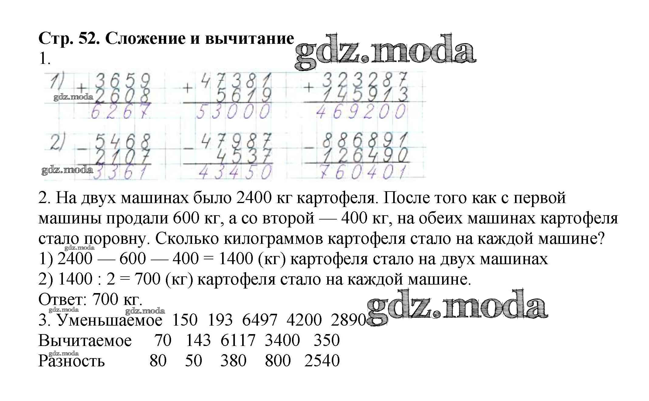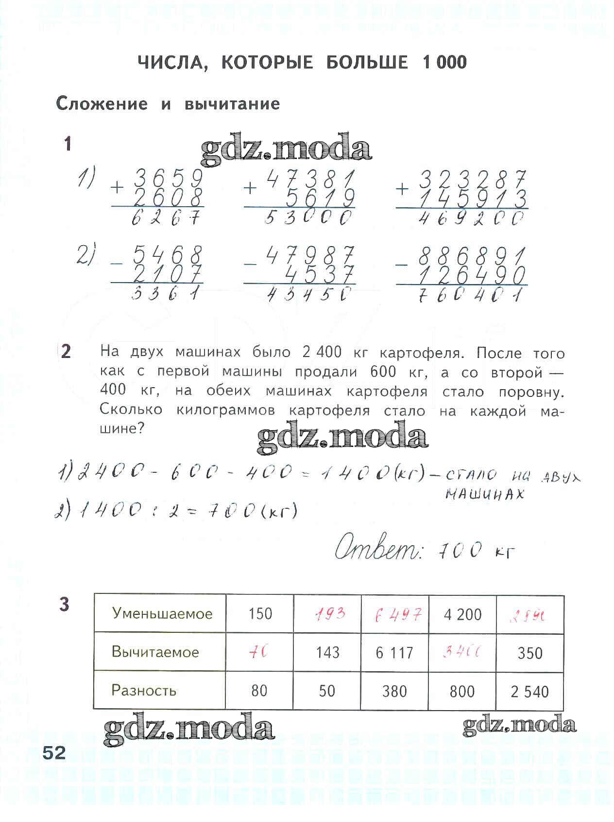 ОТВЕТ на задание № 52 Рабочая тетрадь по Математике 4 класс Волкова Школа России