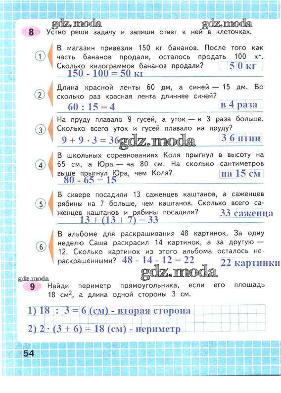 ОТВЕТ на задание № 54 Рабочая тетрадь по Математике 4 класс Волкова Школа России