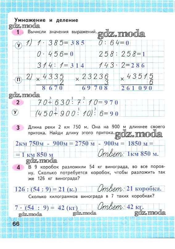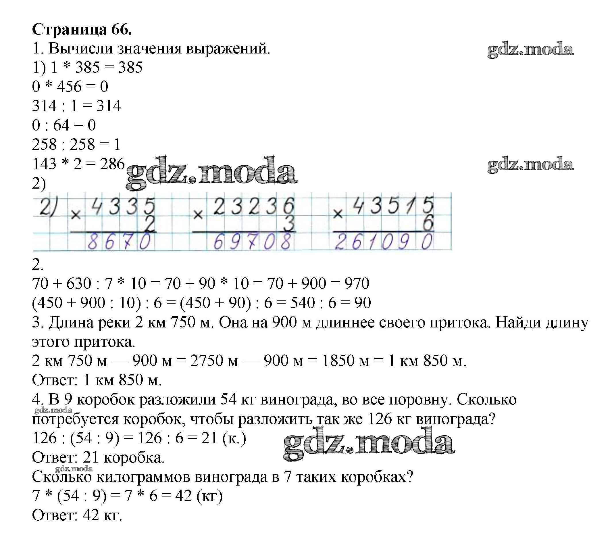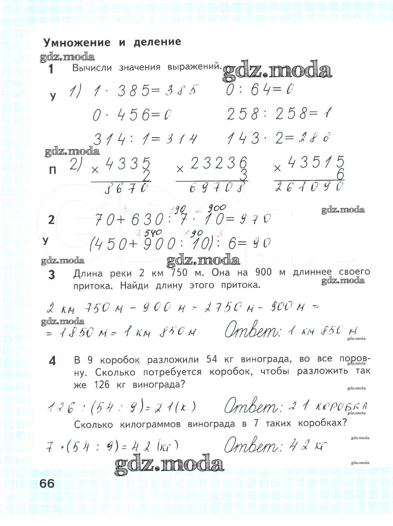 ОТВЕТ на задание № 66 Рабочая тетрадь по Математике 4 класс Волкова Школа России