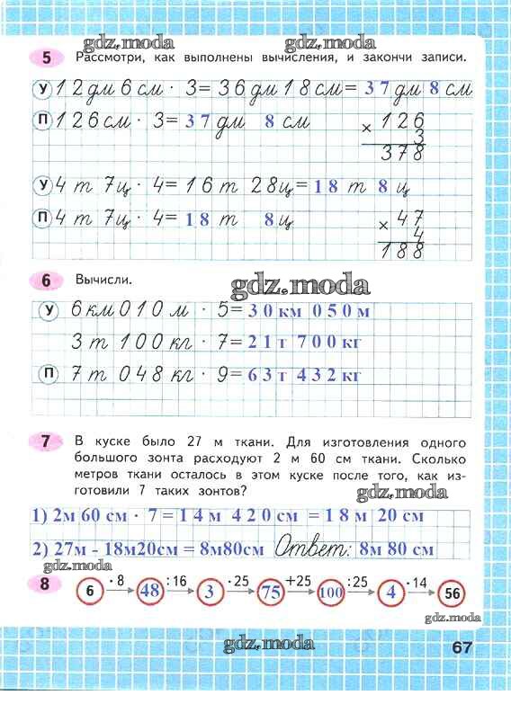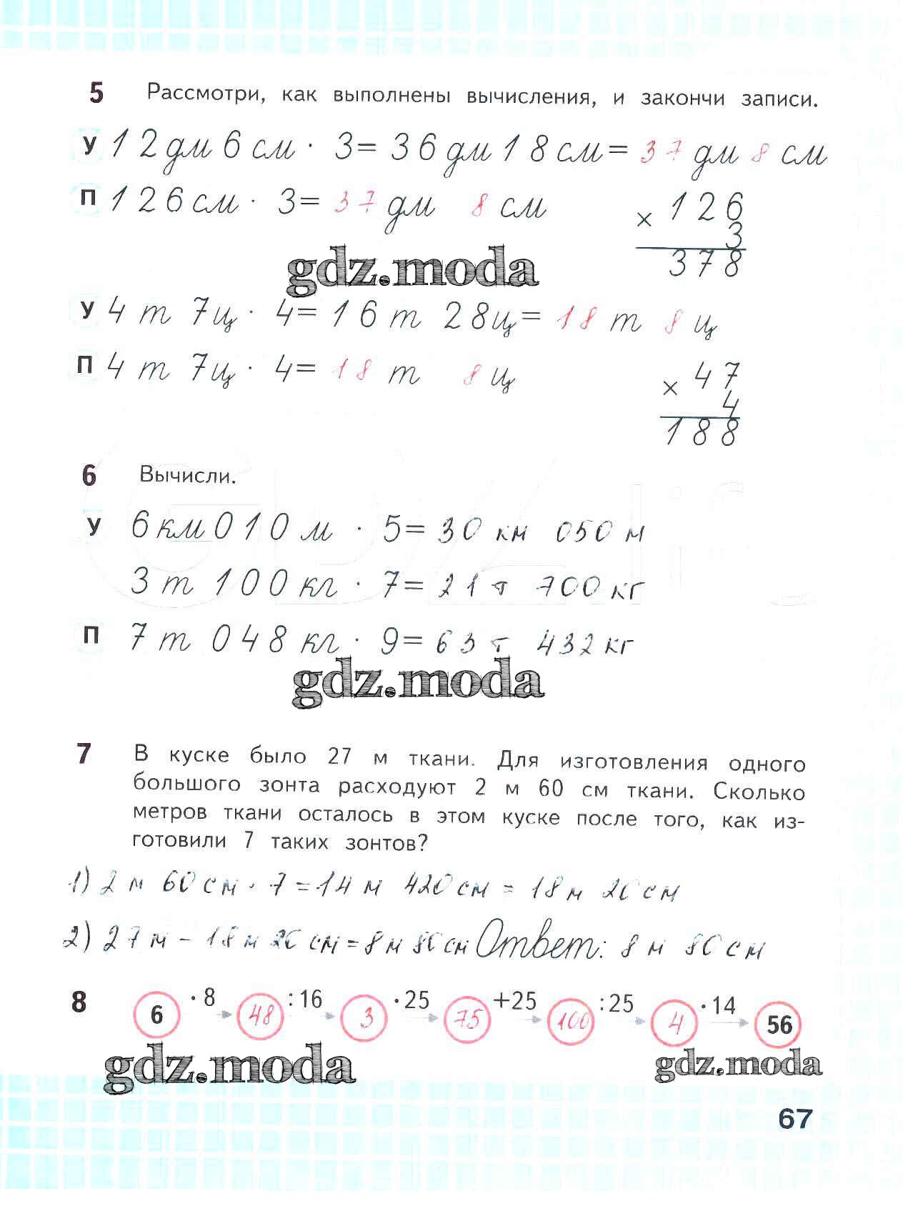 ОТВЕТ на задание № 67 Рабочая тетрадь по Математике 4 класс Волкова Школа России