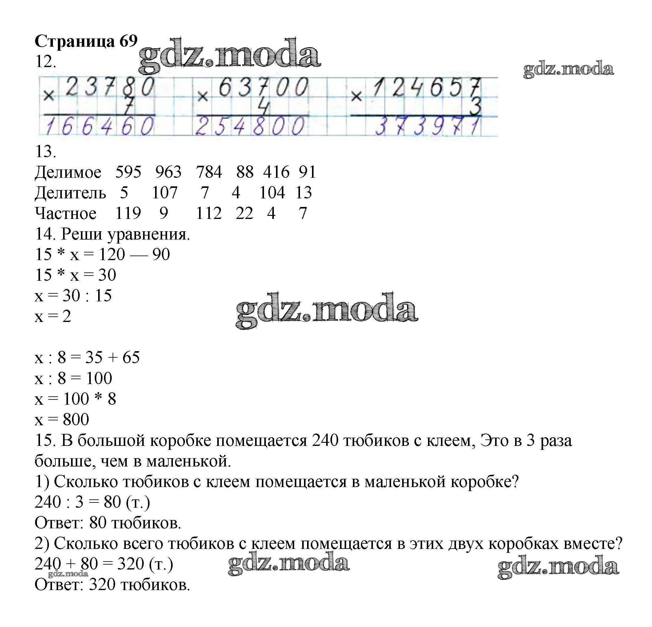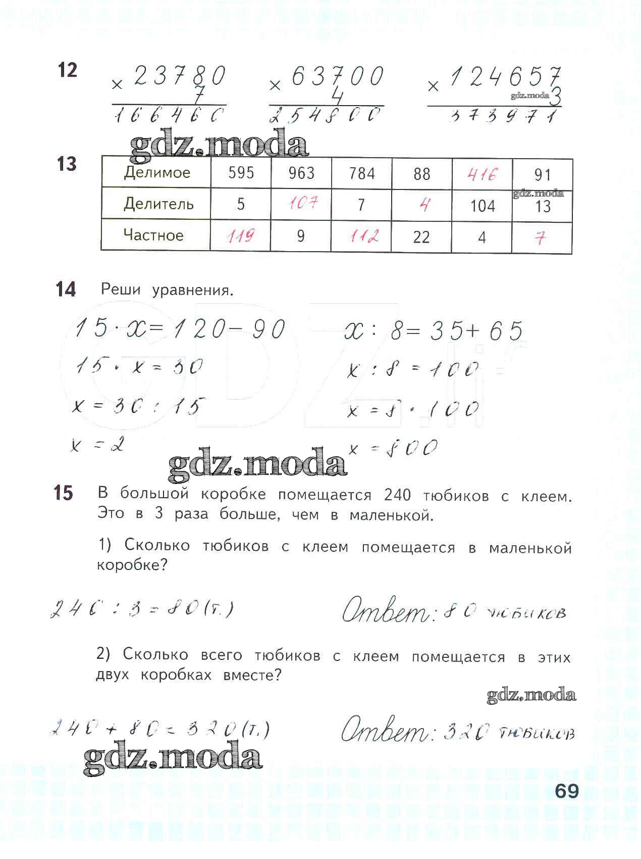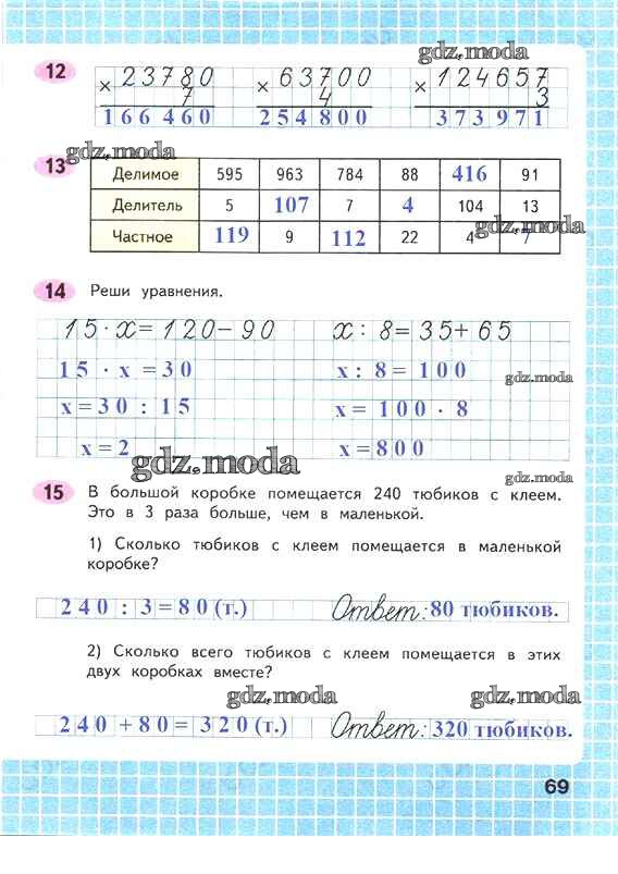 ОТВЕТ на задание № 69 Рабочая тетрадь по Математике 4 класс Волкова Школа России