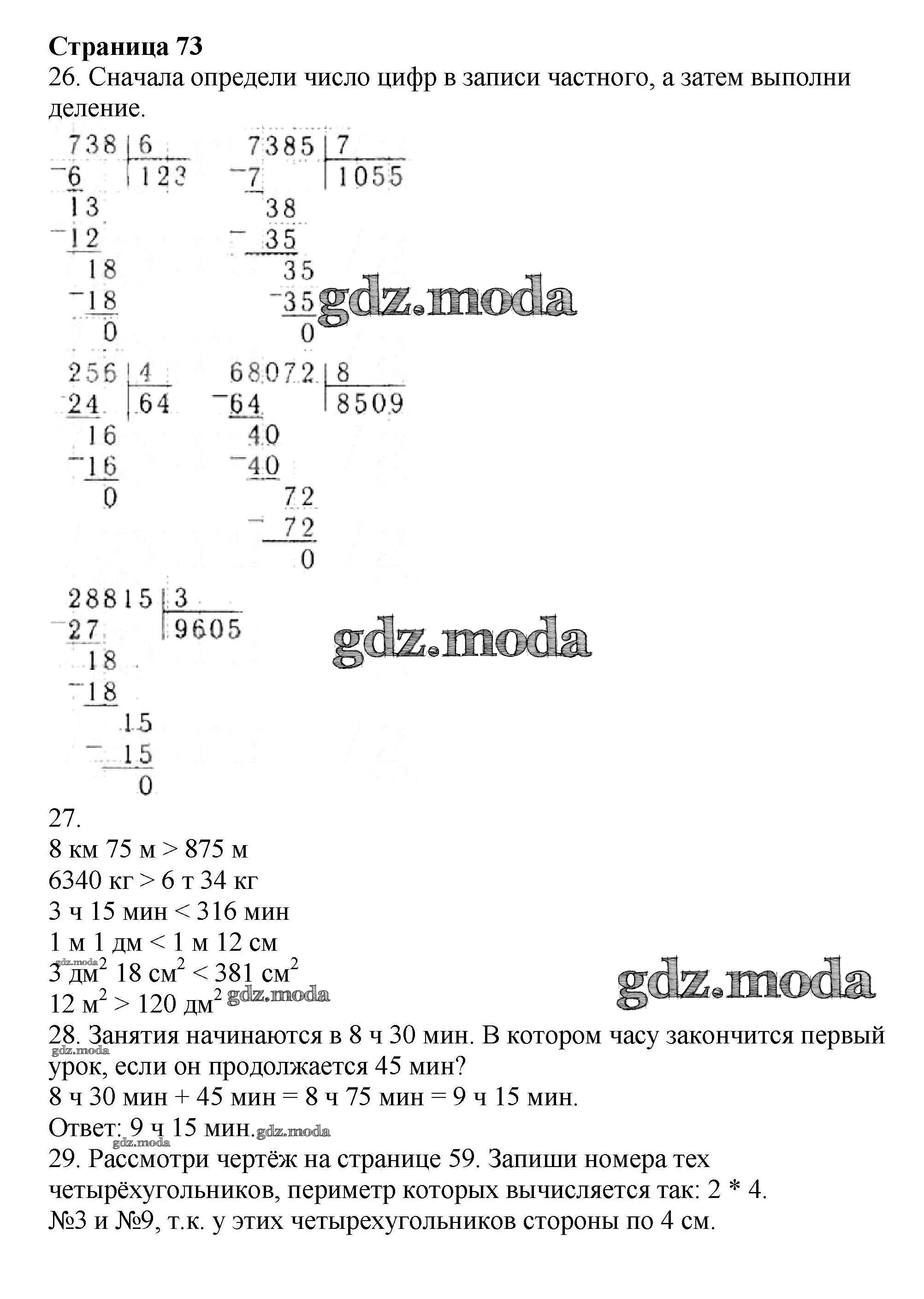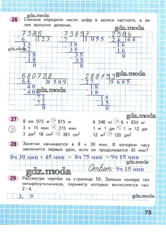 ОТВЕТ на задание № 73 Рабочая тетрадь по Математике 4 класс Волкова Школа России