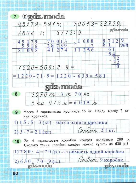 ОТВЕТ на задание № 80 Рабочая тетрадь по Математике 4 класс Волкова Школа России
