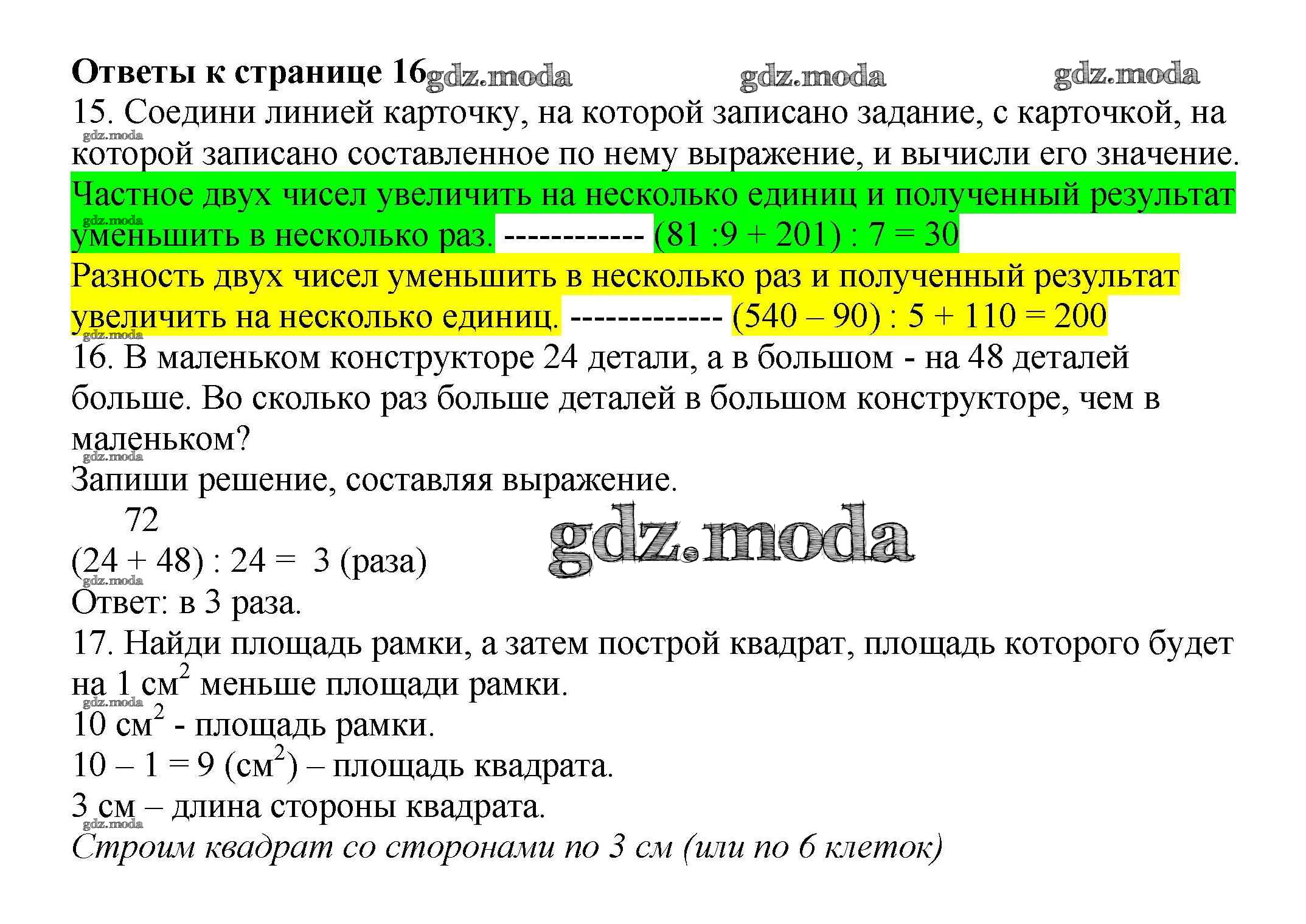 ОТВЕТ на задание № 16 Рабочая тетрадь по Математике 4 класс Волкова Школа России