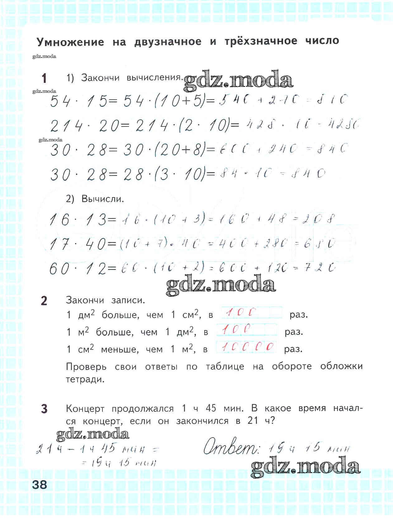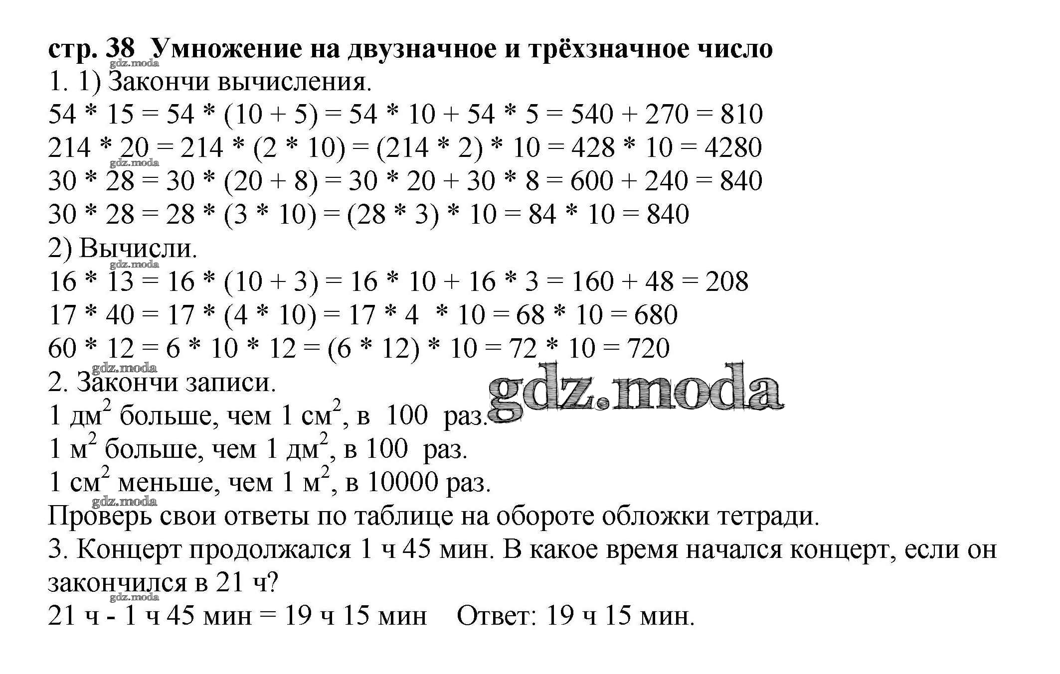 ОТВЕТ на задание № 38 Рабочая тетрадь по Математике 4 класс Волкова Школа России