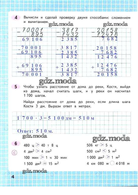 ОТВЕТ на задание № 4 Рабочая тетрадь по Математике 4 класс Волкова Школа России