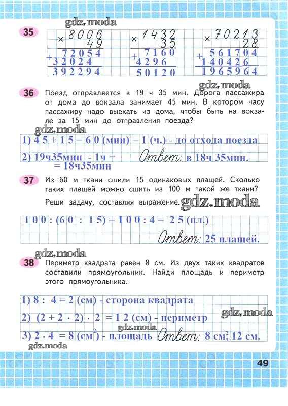 ОТВЕТ на задание № 49 Рабочая тетрадь по Математике 4 класс Волкова Школа России