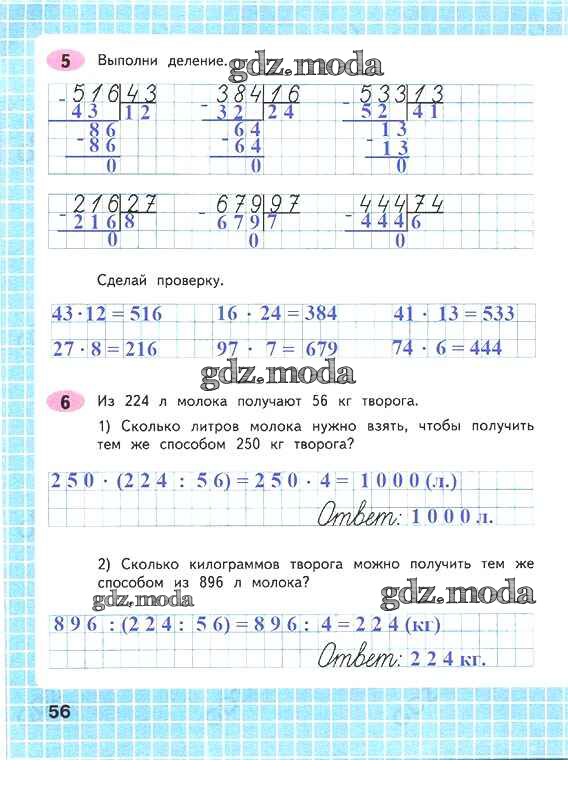 ОТВЕТ на задание № 56 Рабочая тетрадь по Математике 4 класс Волкова Школа России