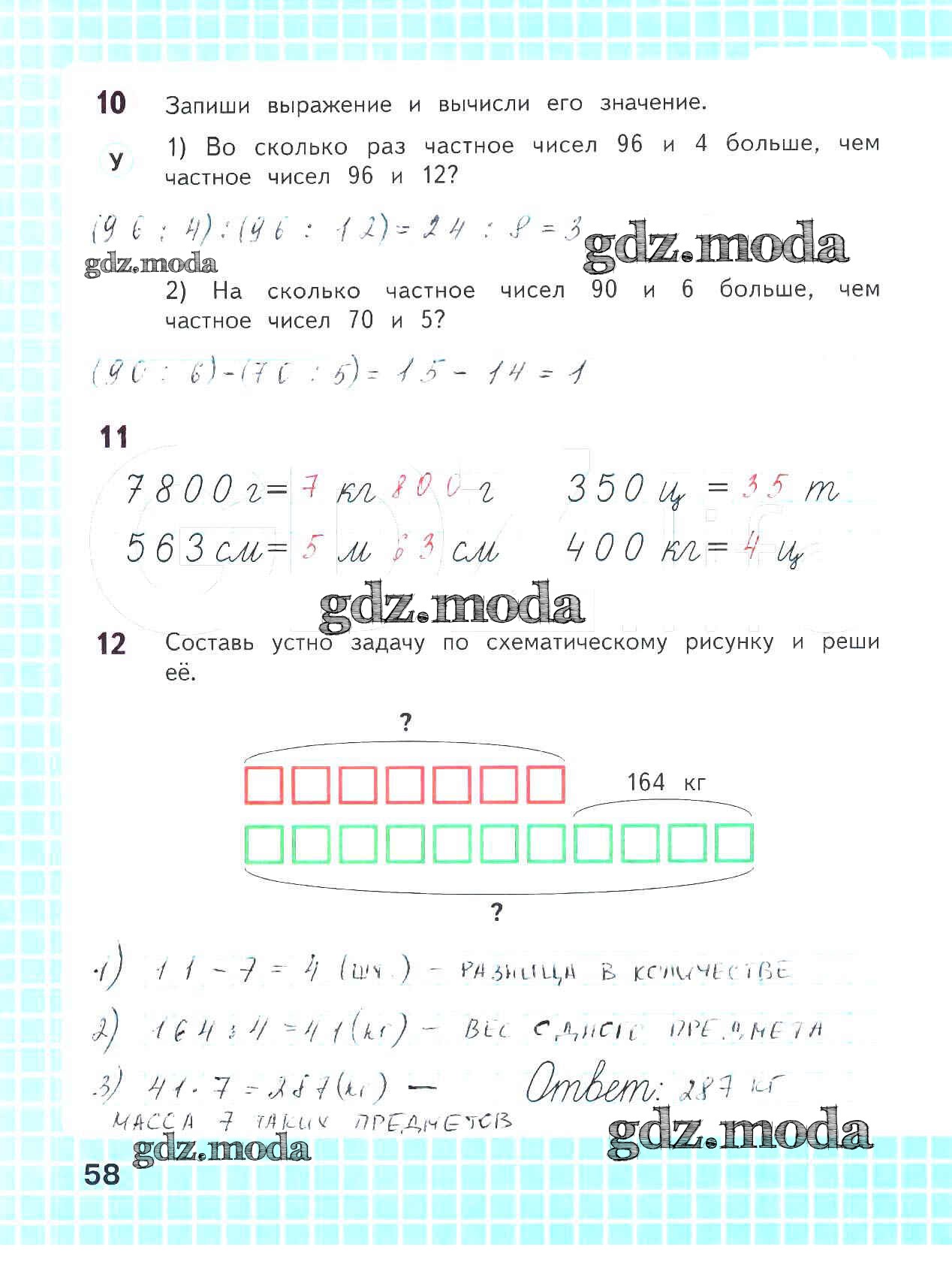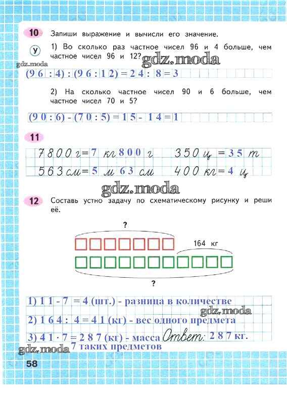 ОТВЕТ на задание № 58 Рабочая тетрадь по Математике 4 класс Волкова Школа России