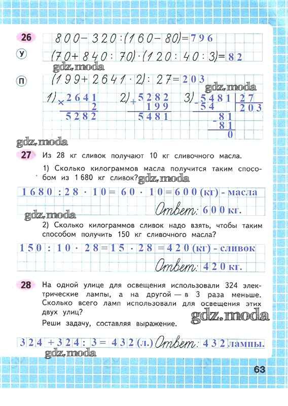 ОТВЕТ на задание № 63 Рабочая тетрадь по Математике 4 класс Волкова Школа России
