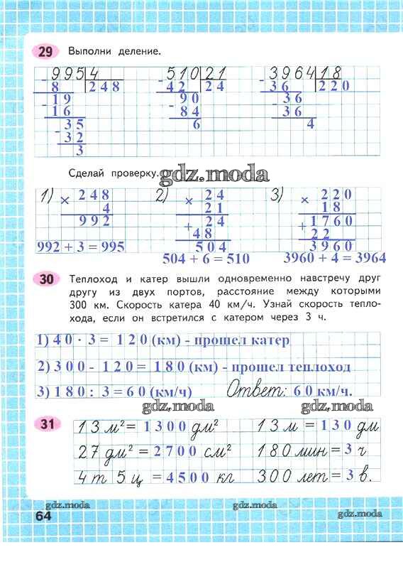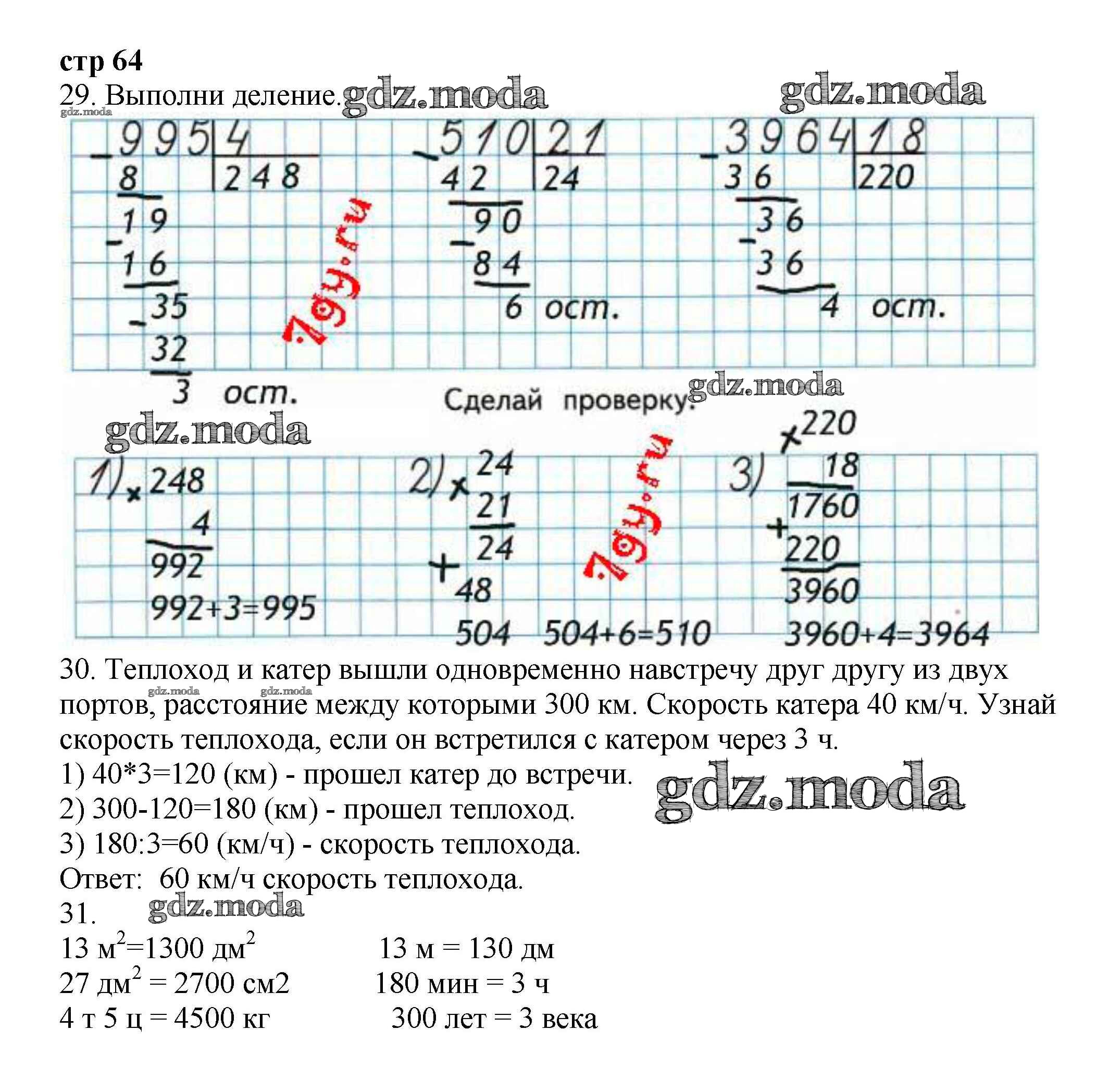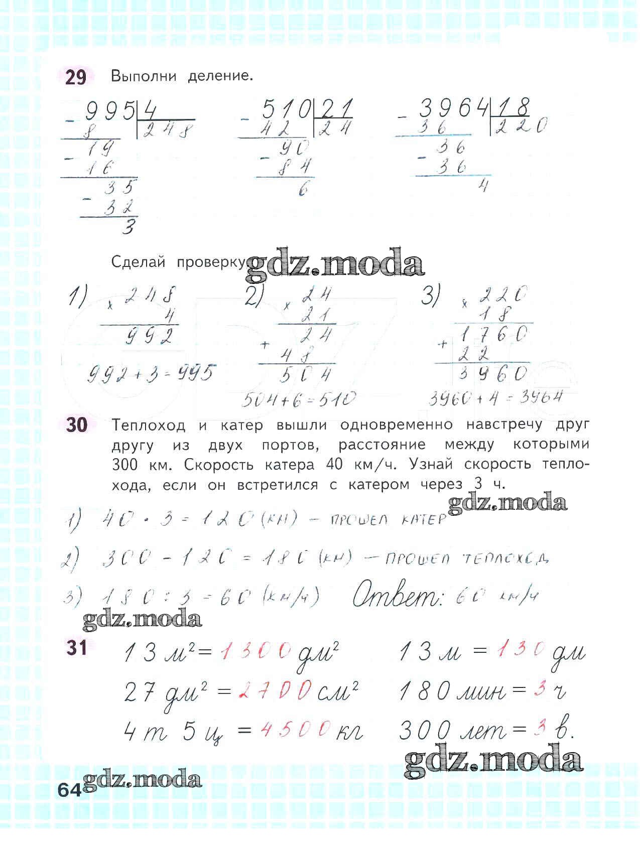 ОТВЕТ на задание № 64 Рабочая тетрадь по Математике 4 класс Волкова Школа России