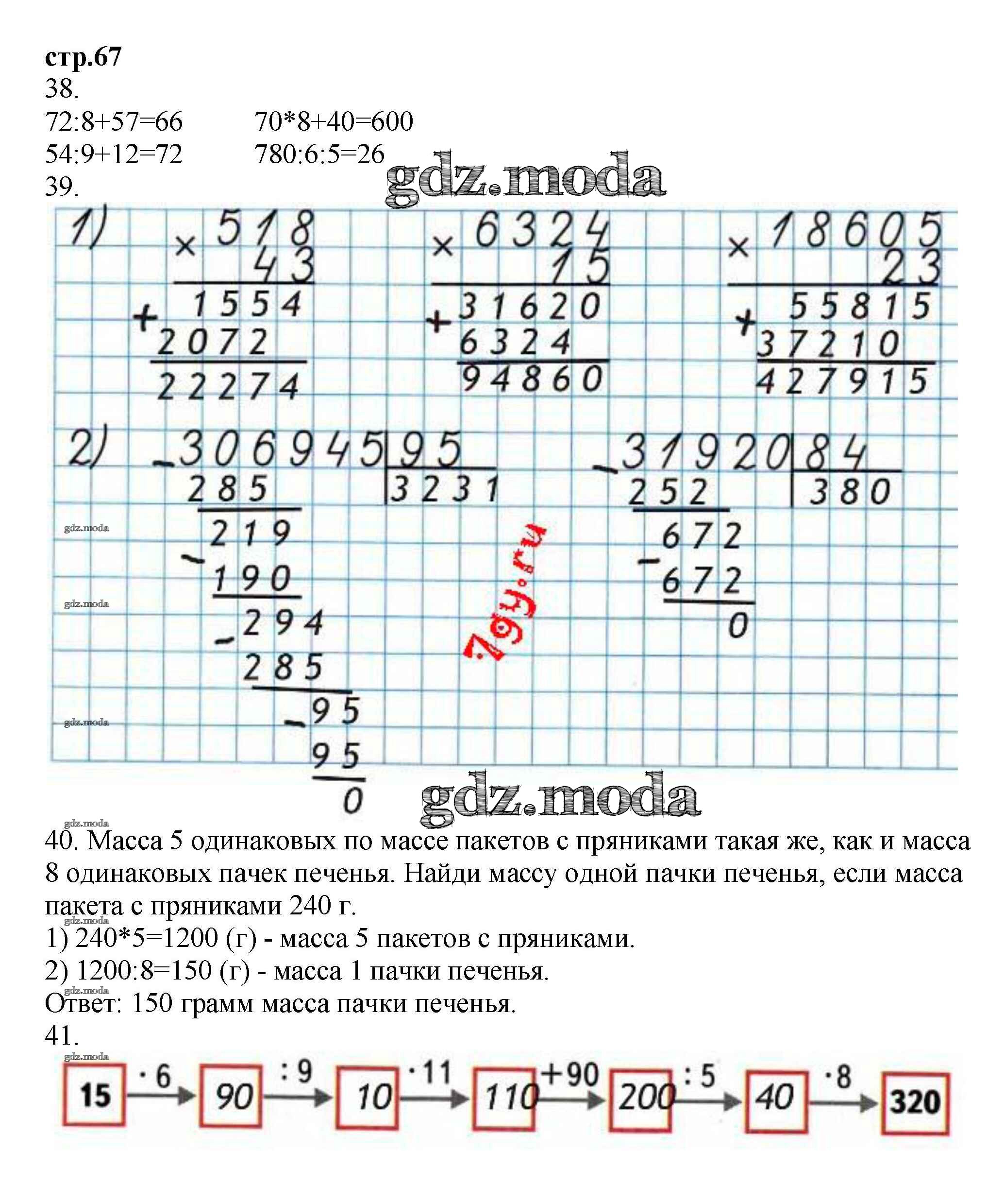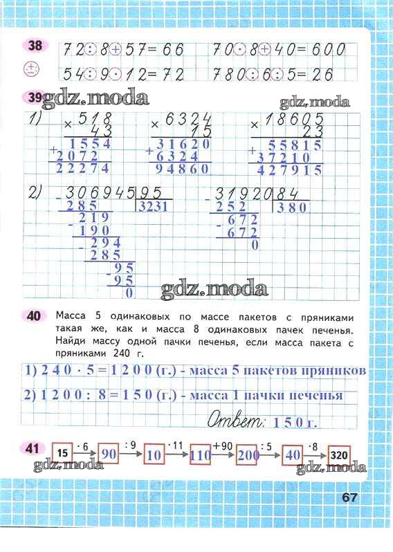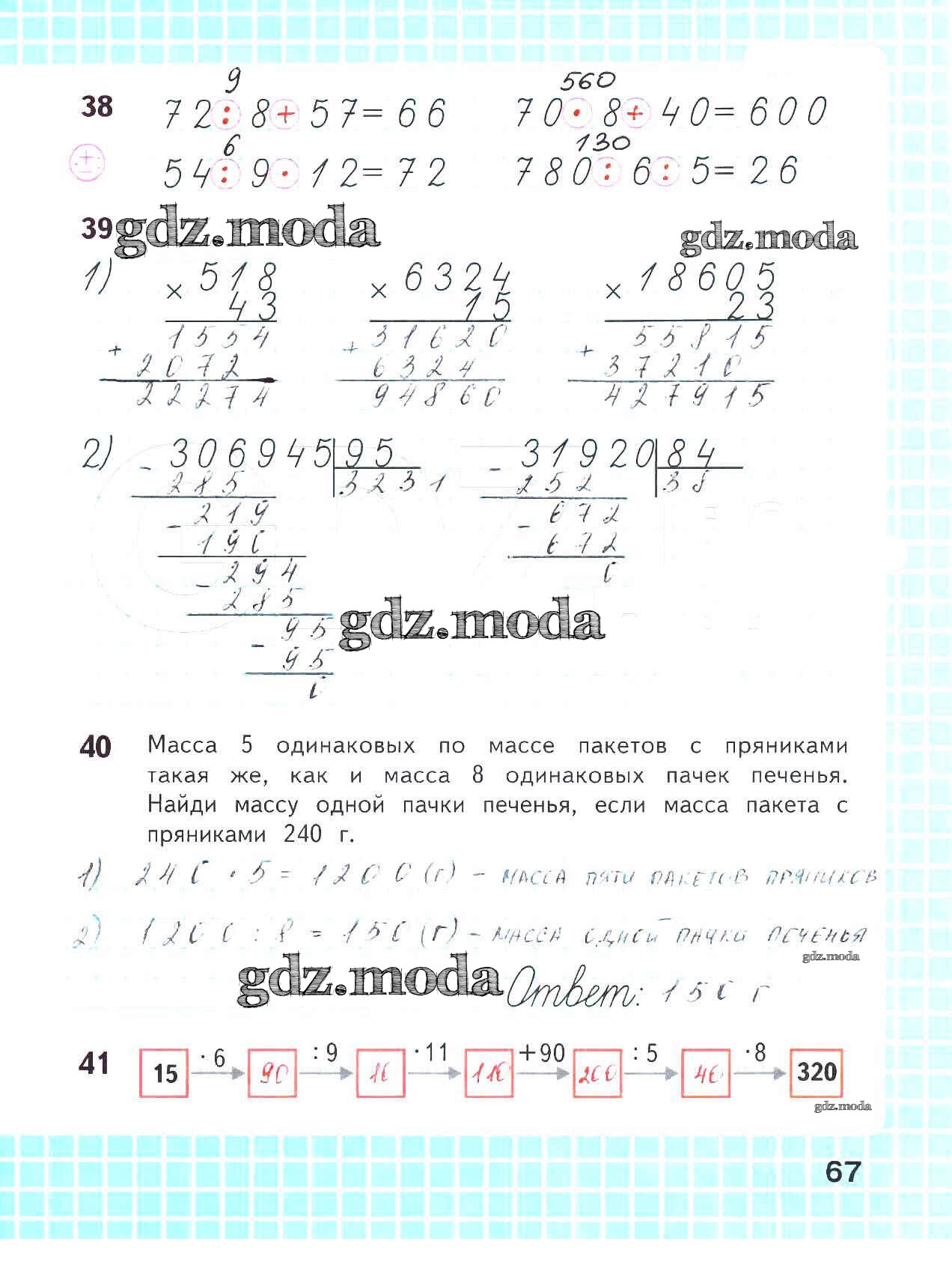 ОТВЕТ на задание № 67 Рабочая тетрадь по Математике 4 класс Волкова Школа России