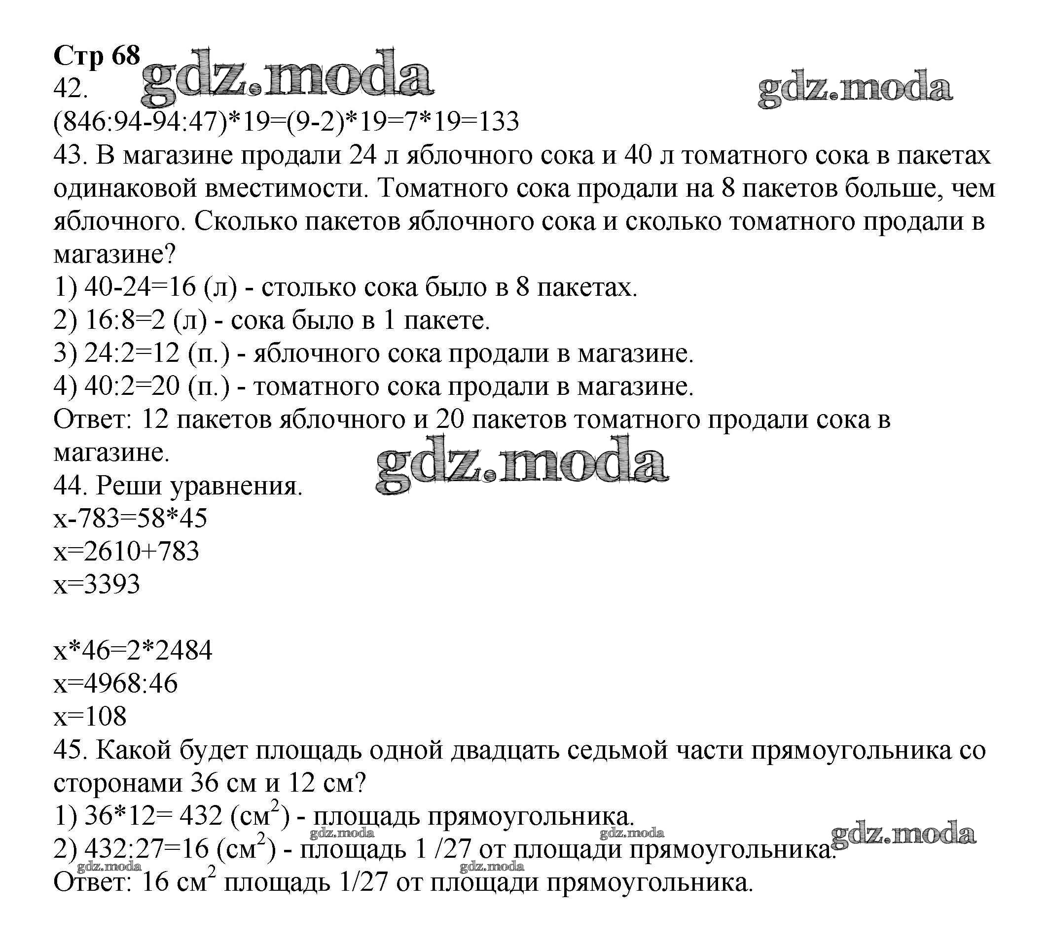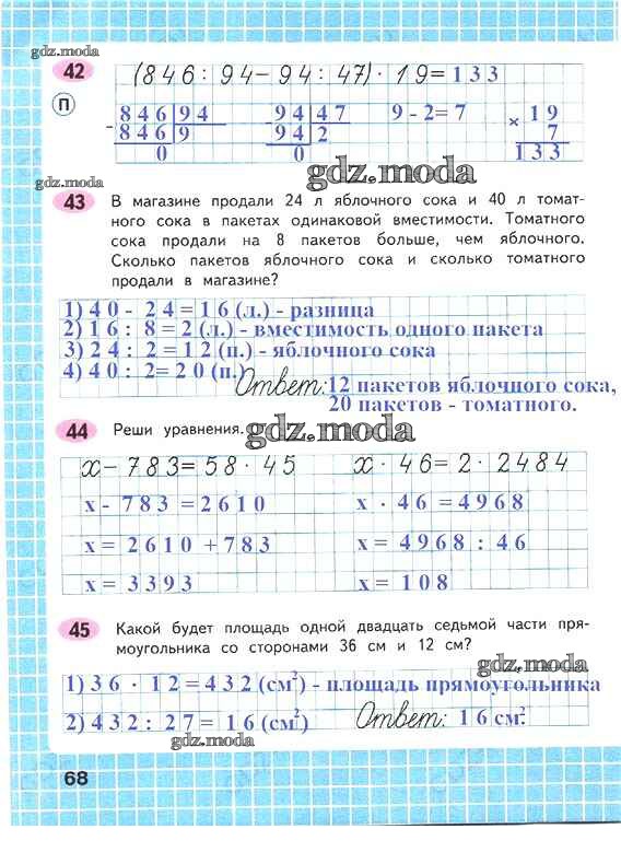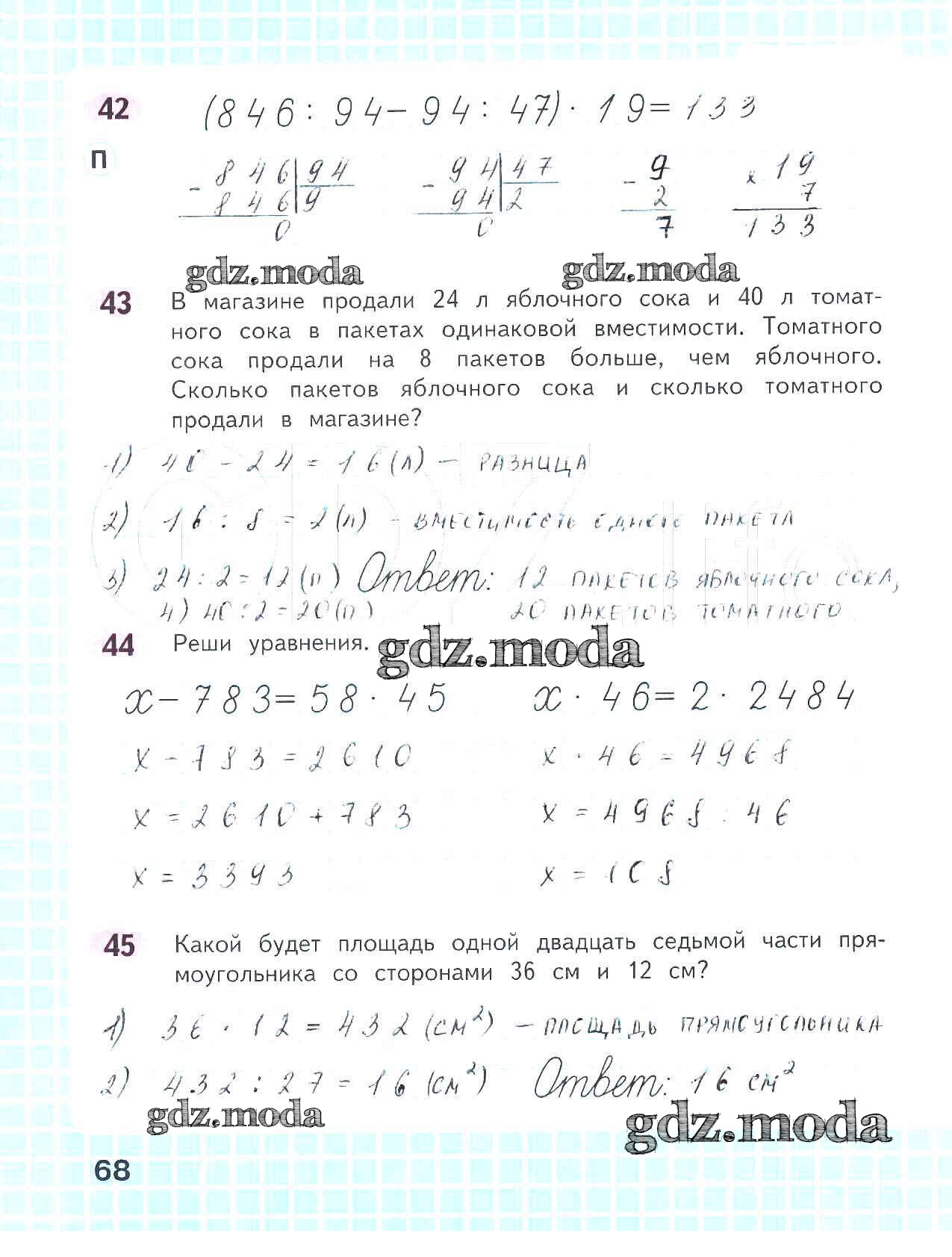 ОТВЕТ на задание № 68 Рабочая тетрадь по Математике 4 класс Волкова Школа России