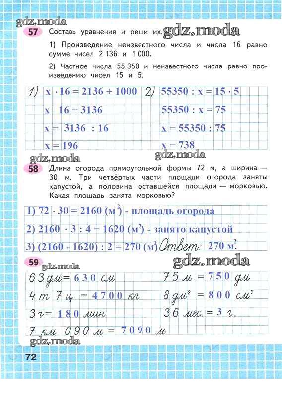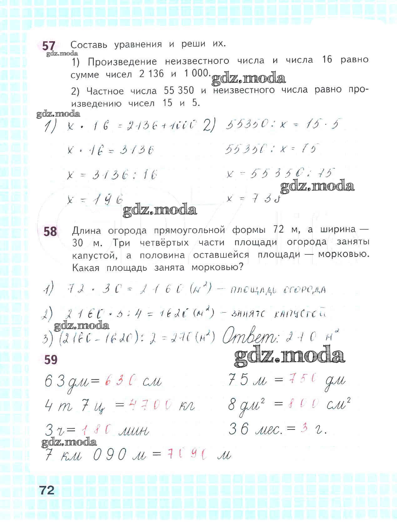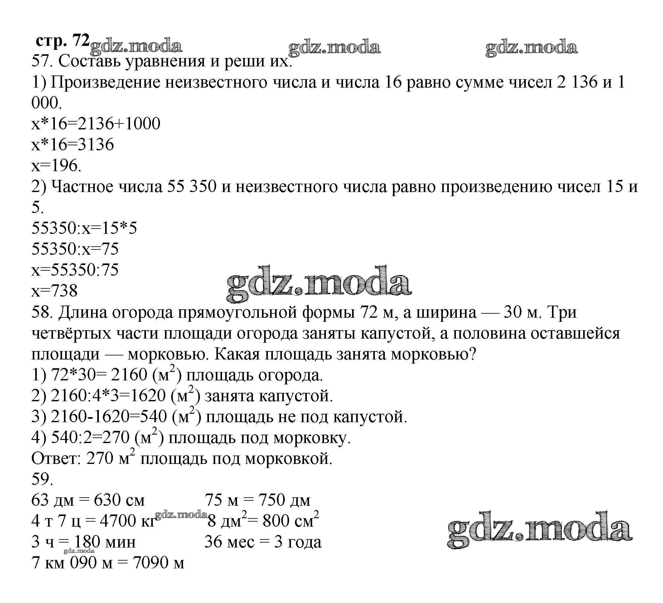 ОТВЕТ на задание № 72 Рабочая тетрадь по Математике 4 класс Волкова Школа России