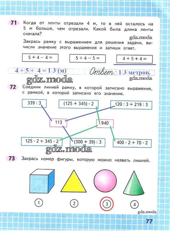 ОТВЕТ на задание № 77 Рабочая тетрадь по Математике 4 класс Волкова Школа России