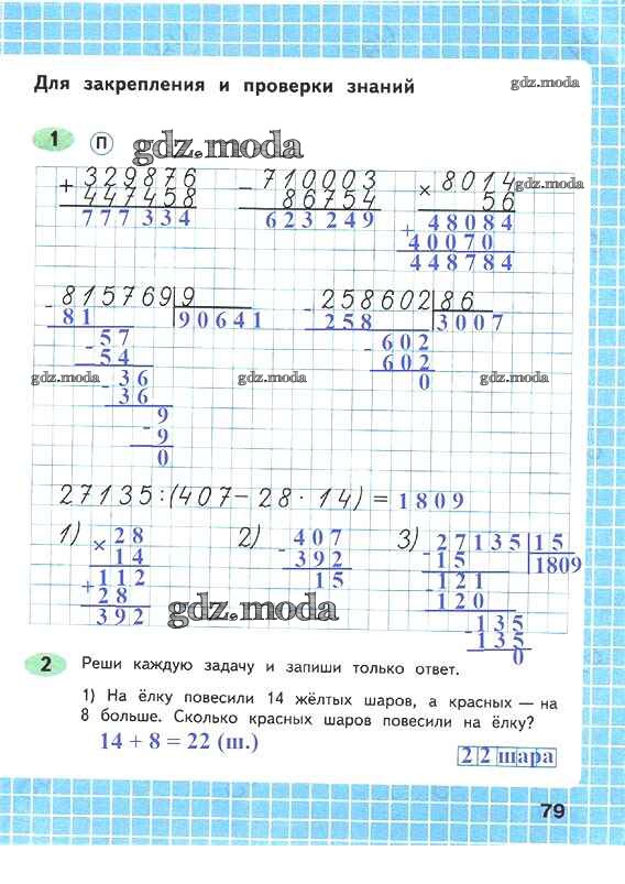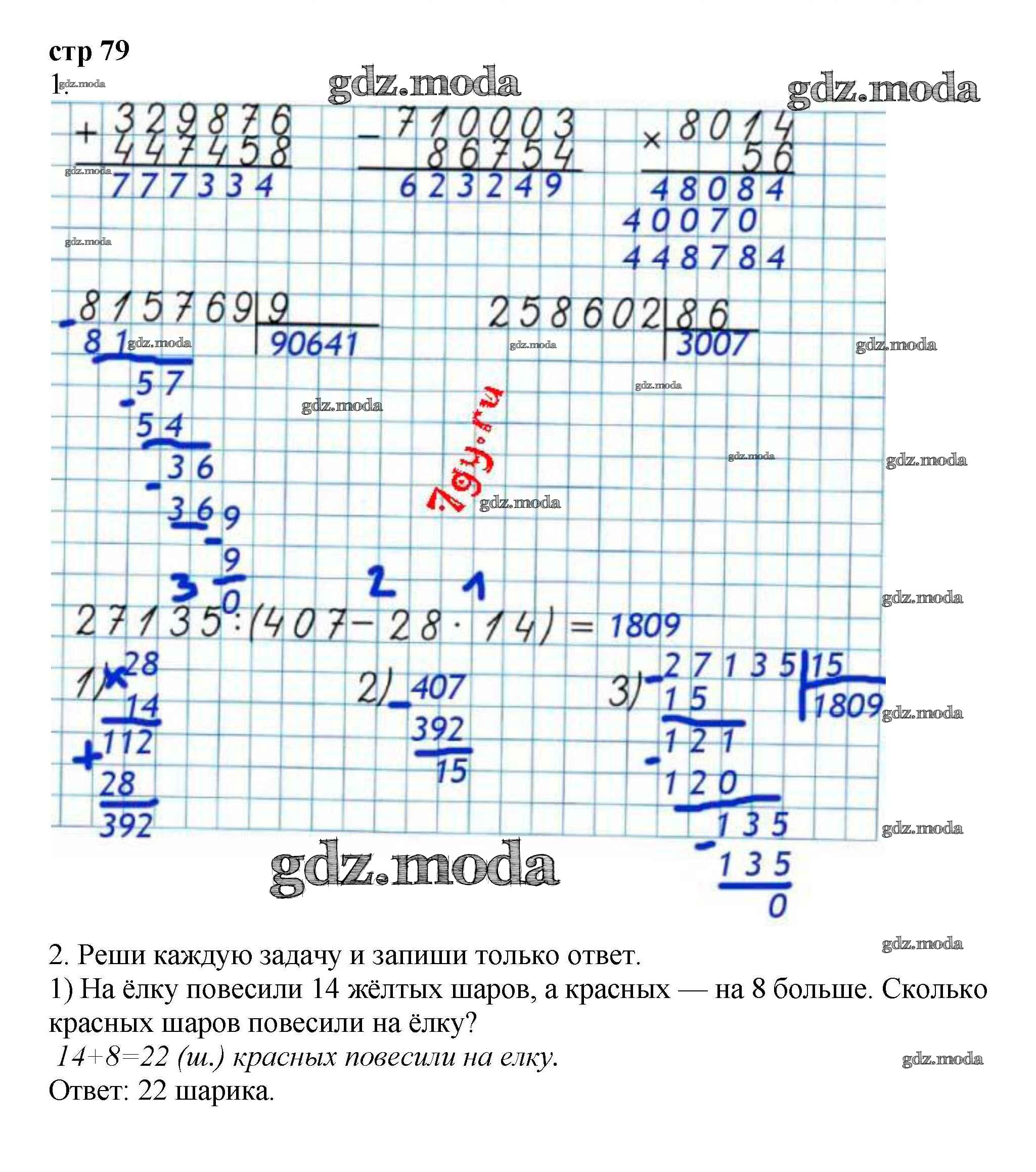 ОТВЕТ на задание № 79 Рабочая тетрадь по Математике 4 класс Волкова Школа России