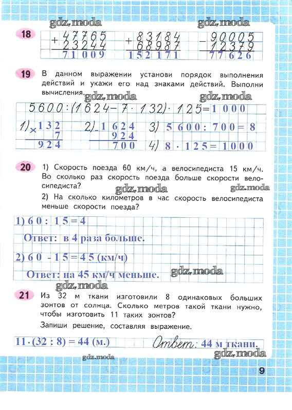 ОТВЕТ на задание № 9 Рабочая тетрадь по Математике 4 класс Волкова Школа России