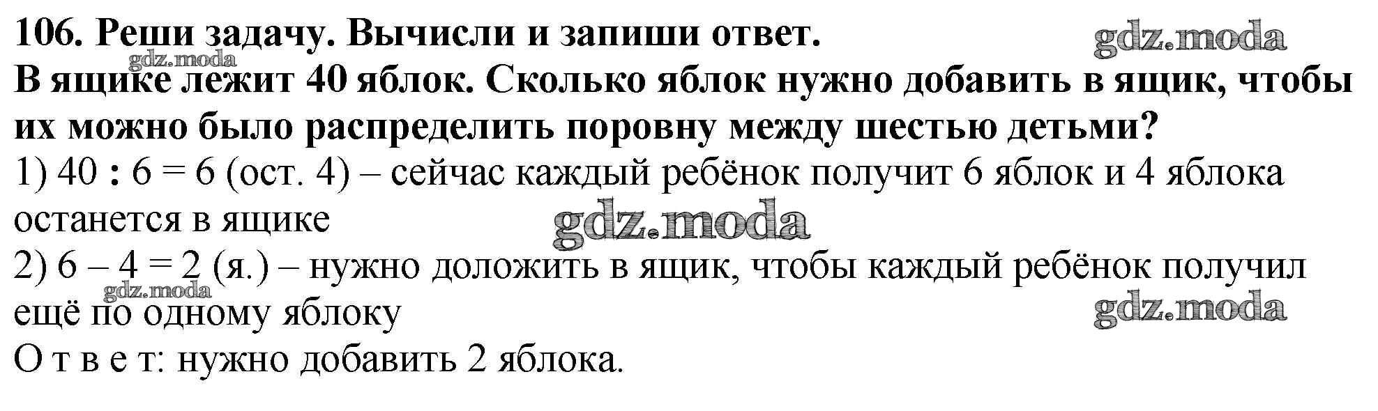 ОТВЕТ на задание № 106 Тетрадь для самостоятельной работы по Математике 4 класс Захарова
