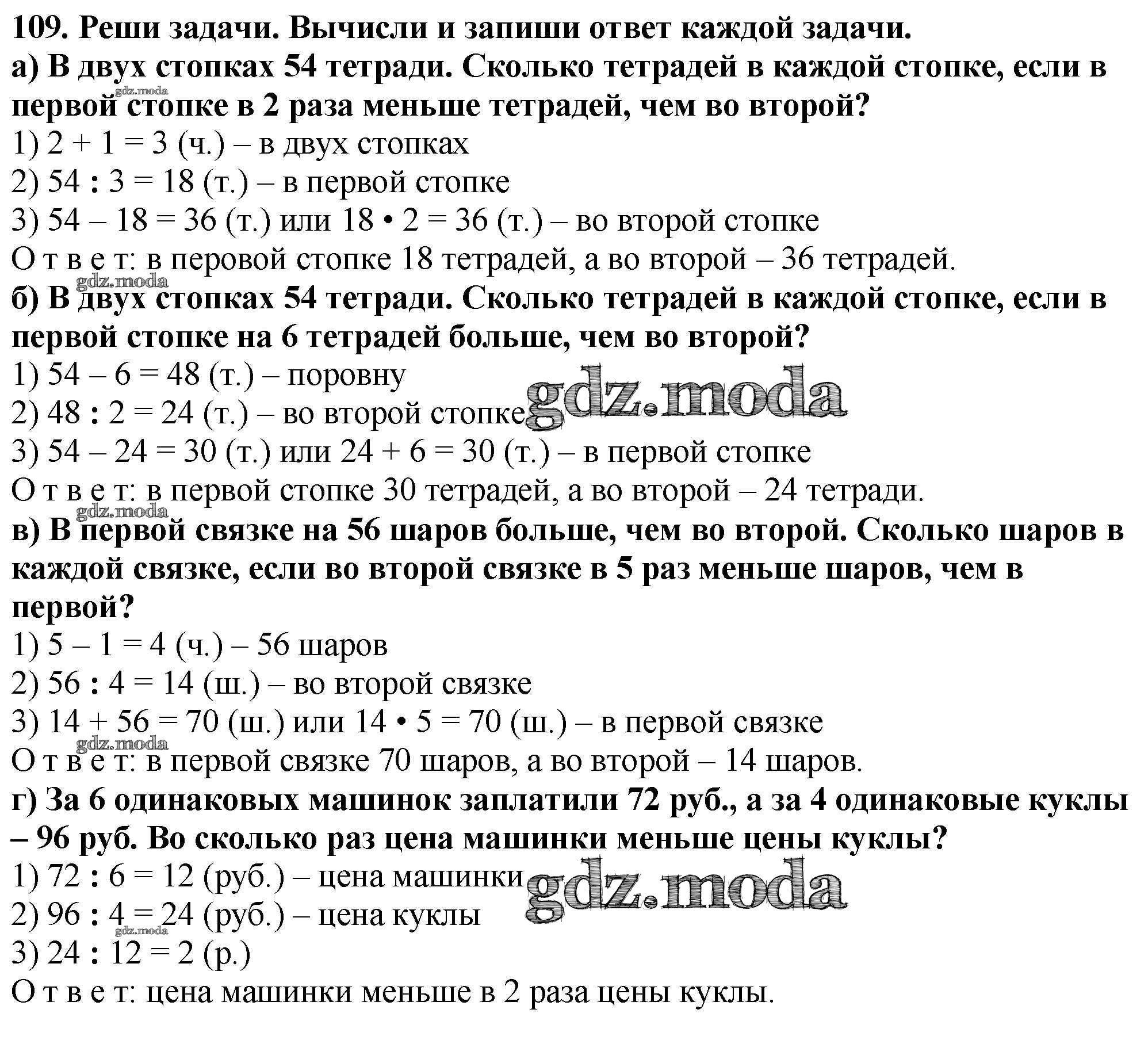 ОТВЕТ на задание № 109 Тетрадь для самостоятельной работы по Математике 4 класс Захарова