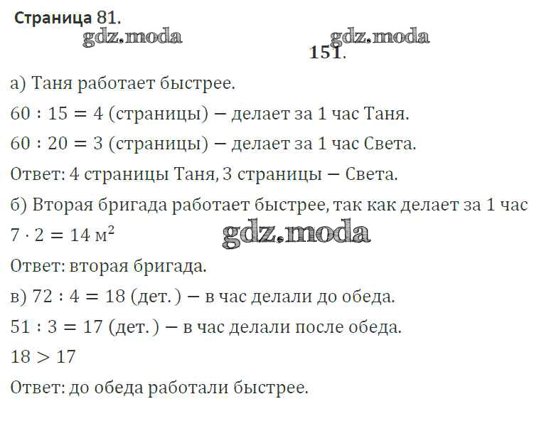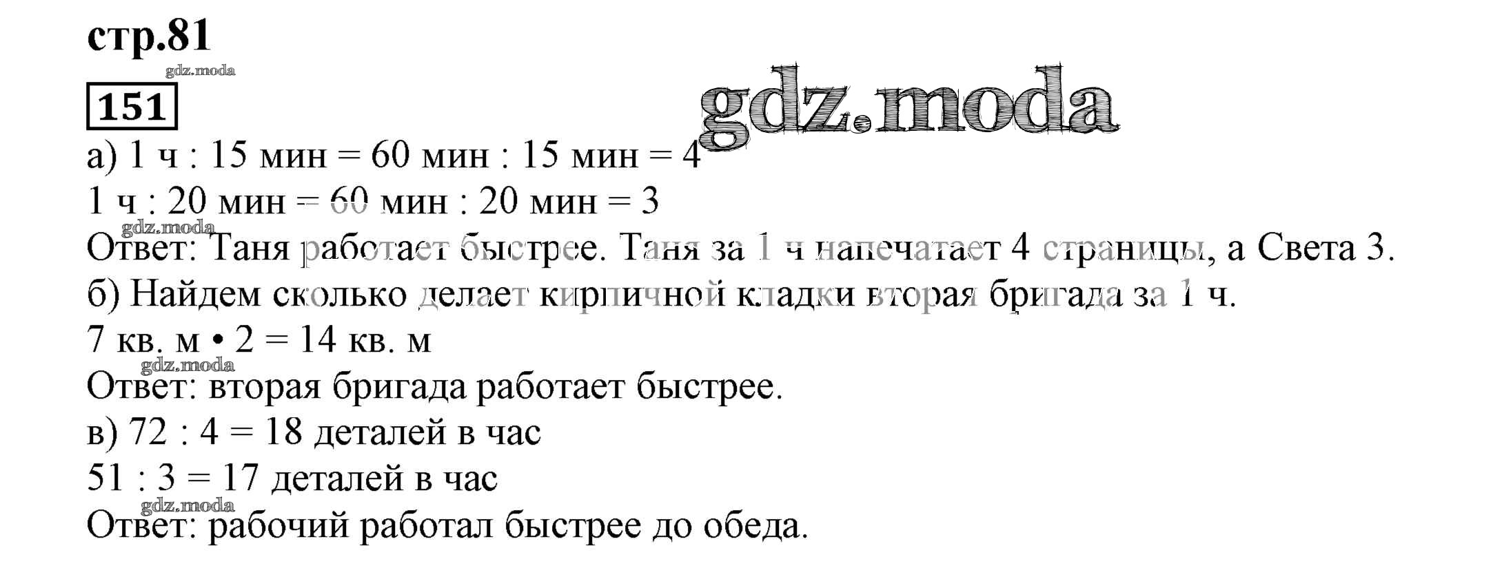 ГДЗ решение к заданию № 151 Математика 4 класс тетрадь для самостоятельной работы Захарова О.А. Академкнига 2015 Часть 1, Часть 2 ФГОС бесплатно на гдз.мода!