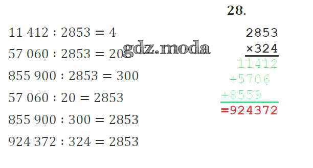 ОТВЕТ на задание № 28 Тетрадь для самостоятельной работы по Математике 4 класс Захарова