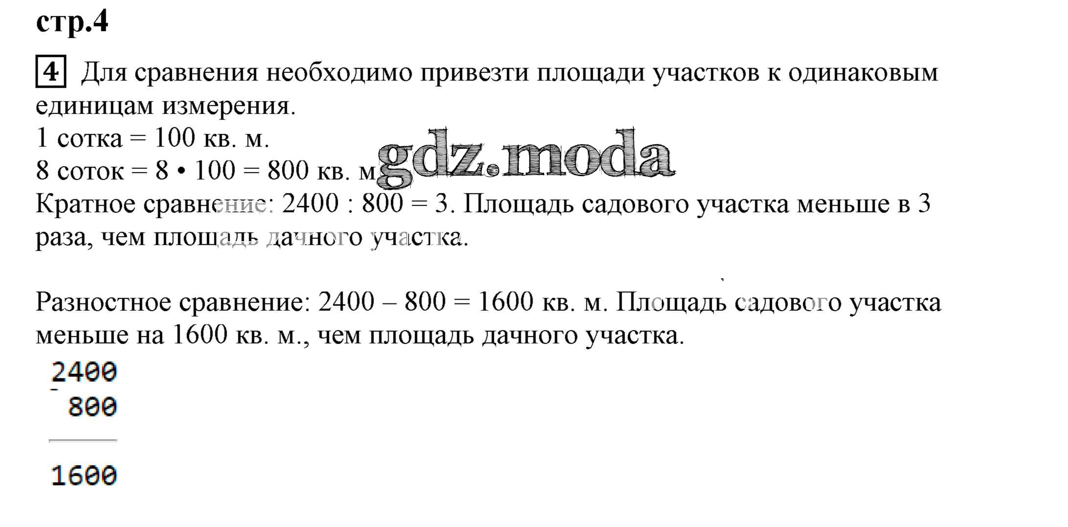 ОТВЕТ на задание № 4 Тетрадь для самостоятельной работы по Математике 4 класс Захарова