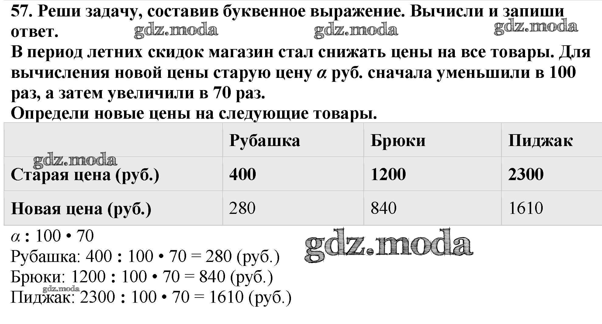 ОТВЕТ на задание № 57 Тетрадь для самостоятельной работы по Математике 4 класс Захарова
